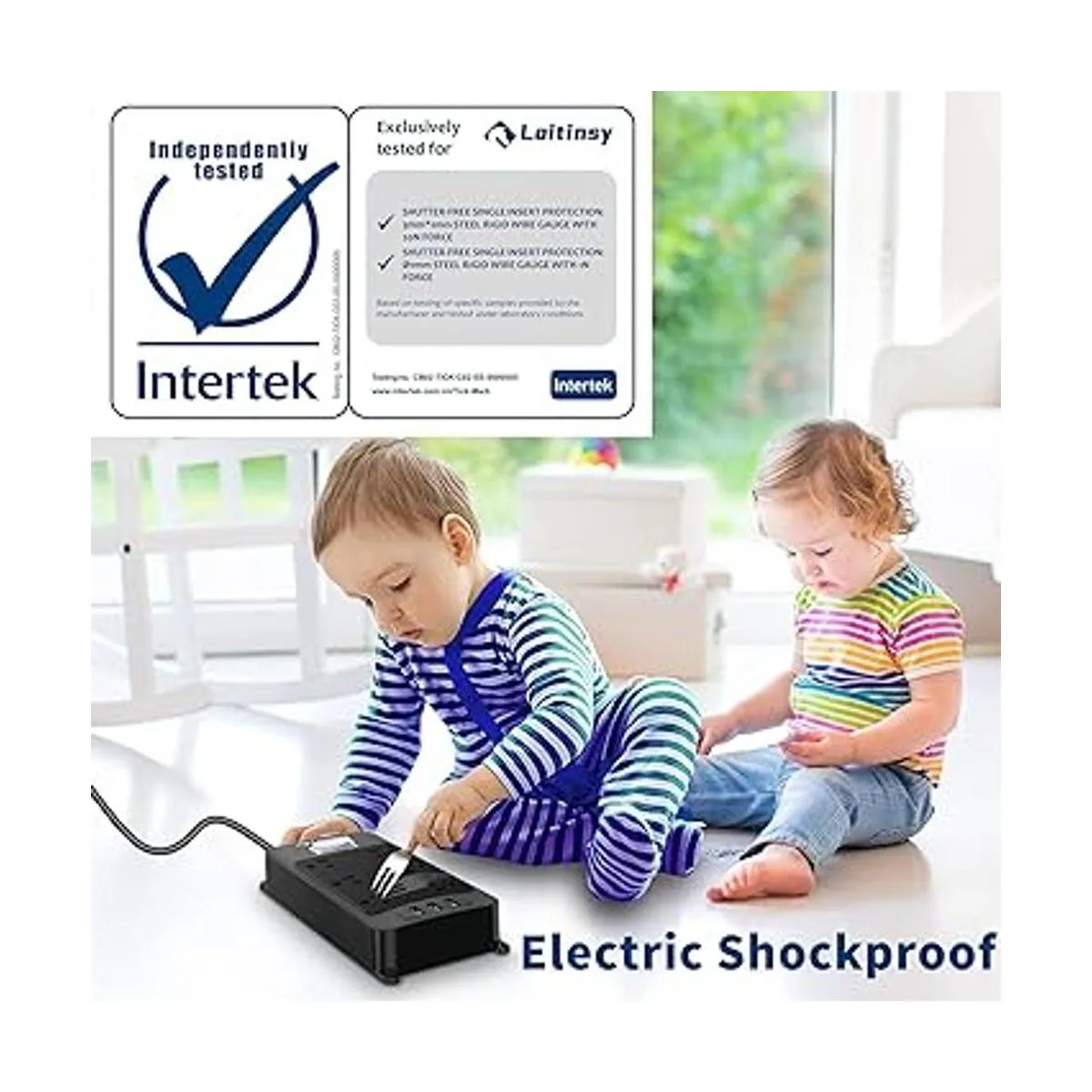 Salida eléctrica a prueba de golpes: la patente USTPO de Loitinsy utiliza una estructura eléctrica única a prueba de golpes diseñada específicamente para enchufes estándar estadounidenses, lo que significa que tenedores, pinzas, llaves e incluso los dedos de los niños no pueden alimentarse a través de estas tomas eléctricas a prueba de golpes.