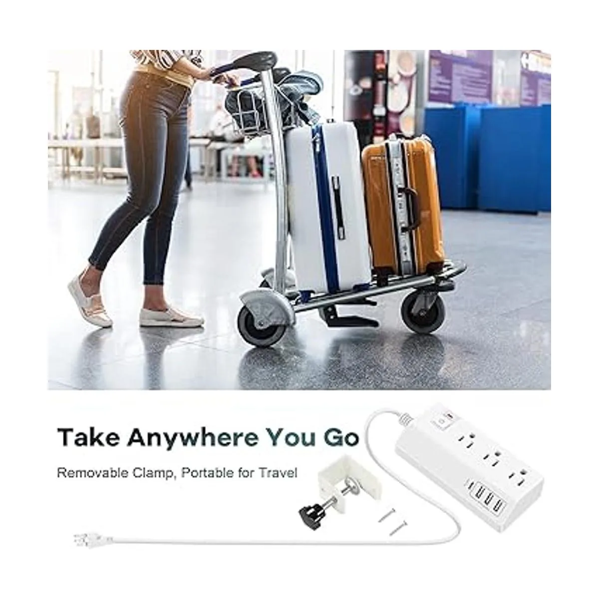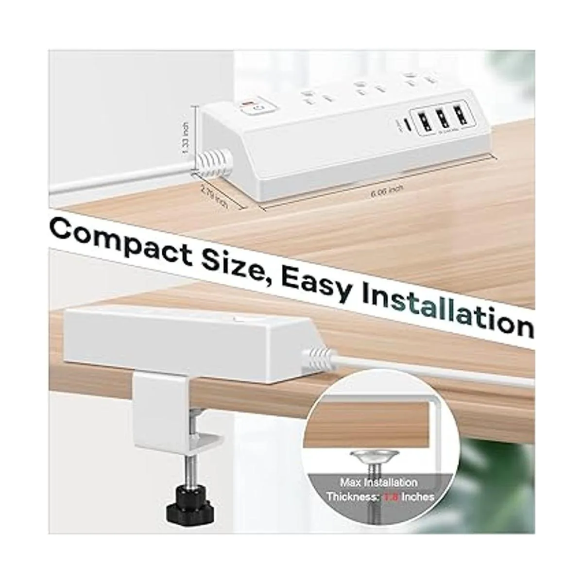 Tira de protección de sobretensiones multiusos: la abrazadera puede soportar un grosor de escritorio de hasta 1.8 pulgadas, funciona perfectamente en el borde del escritorio de tu hogar, dormitorio, oficina o habitación. Y la abrazadera es desmontable y extraíble, puedes desmontar la abrazadera y utilizar la tira de alimentación solo si no la necesitas, es portátil y compacta para montaje en pared, viajes y viajes de negocios