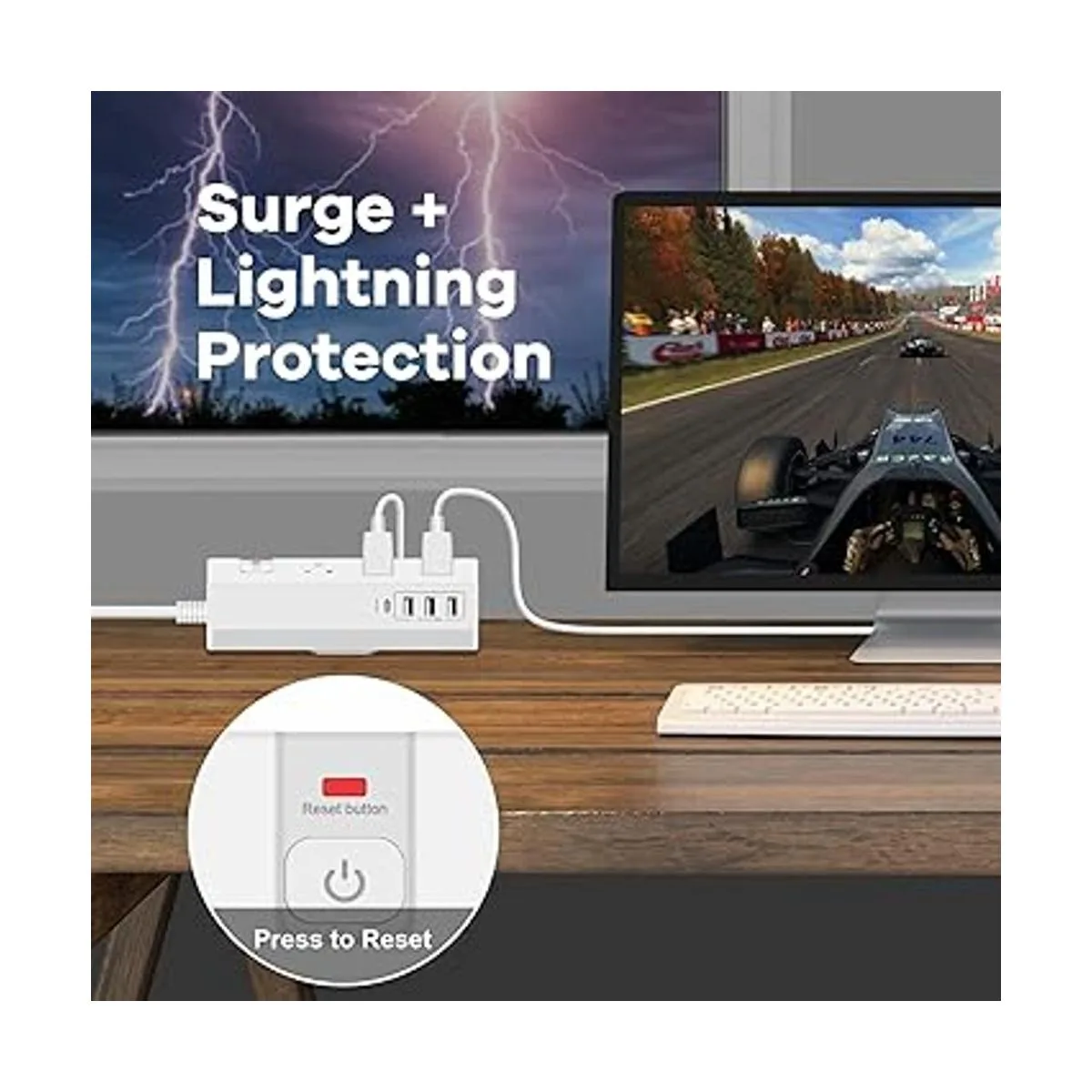 Tira de alimentación con protección de sobrecarga de sobretensión: esta tira de alimentación USB C tiene múltiples protecciones integradas para proteger tus dispositivos contra picos y fluctuación, con interruptor de circuito integrado para protección contra sobrecarga de todas las tomas. Este protector de sobretensiones también tiene protección contra sobrecorriente, sobretensión, cortocircuito para garantizar la seguridad de tus dispositivos electrónicos