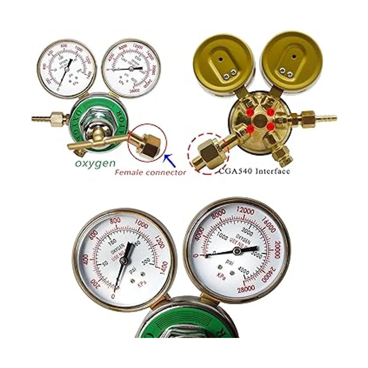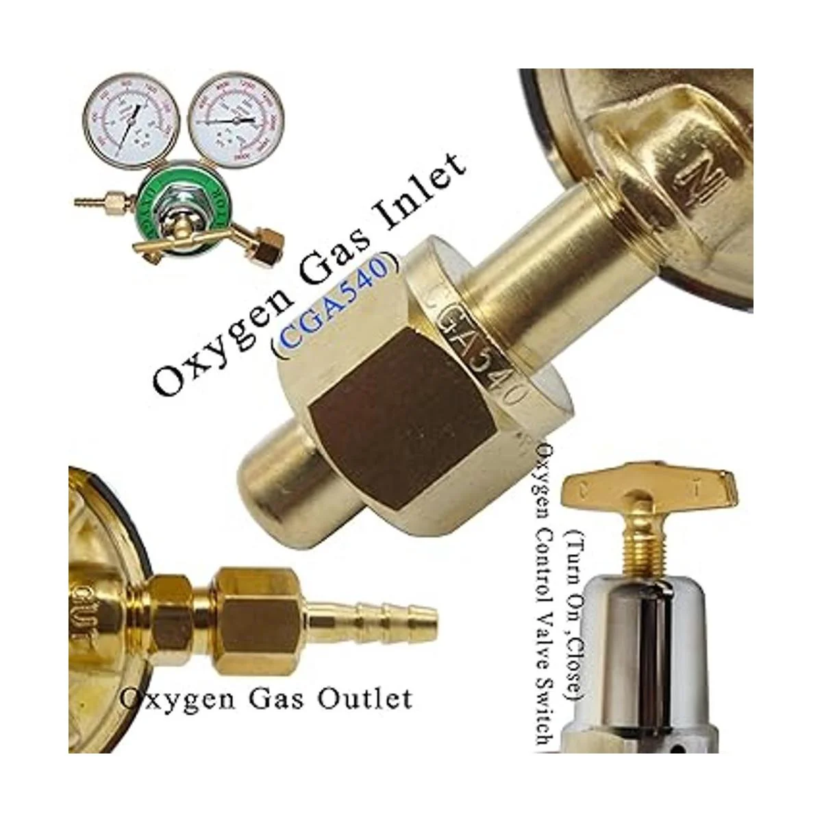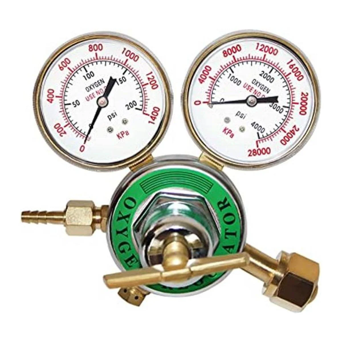 El regulador de oxígeno de alta calidad incluye calibres de 2.0 in de diámetro y una válvula para mostrar la presión precisa. Fabricado en latón grueso y pesado