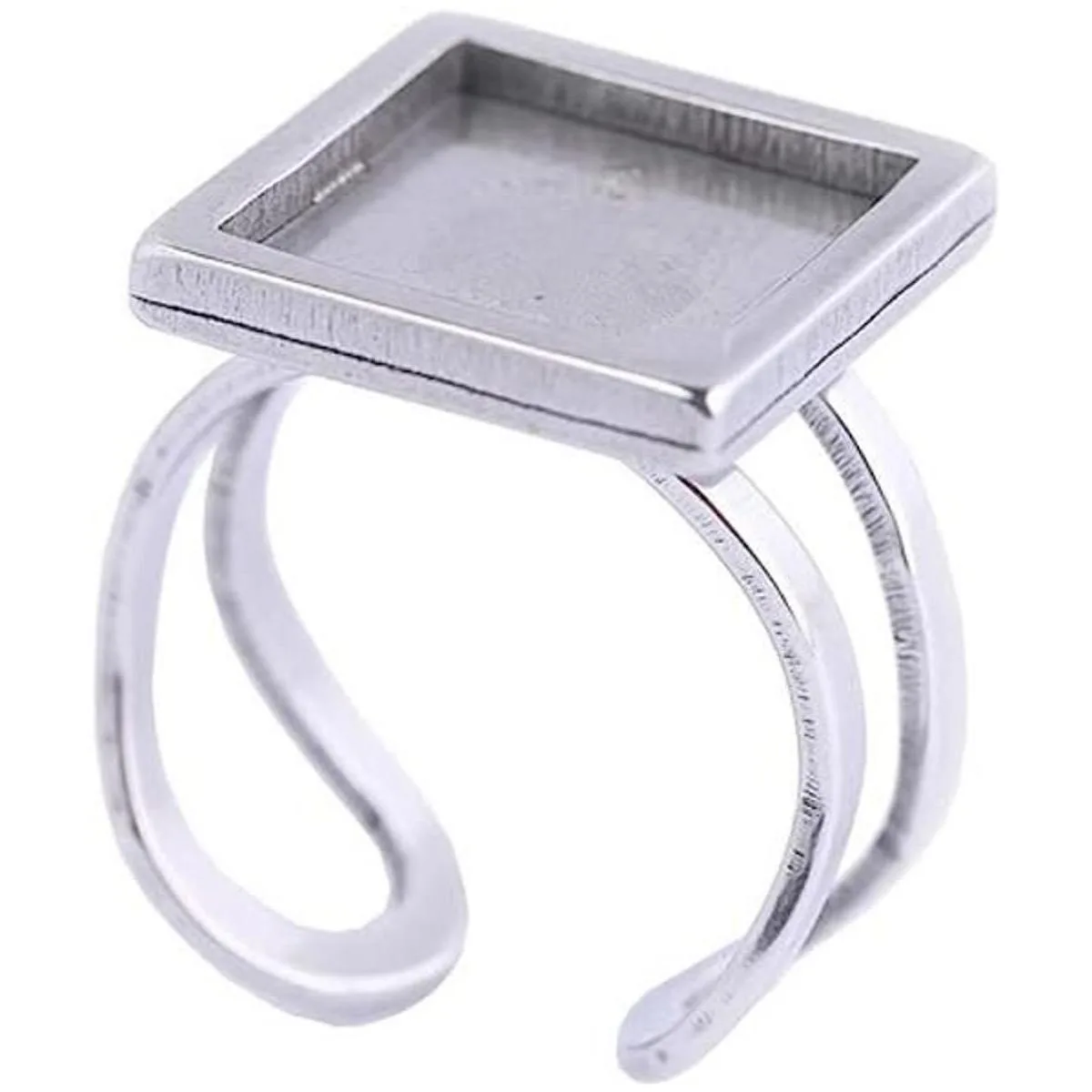 Acero inoxidable, 0.472 in, cuadrado, cabujón, base de anillo en blanco