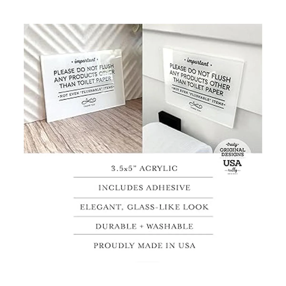 Reilly Originals Letrero de baño acrílico pequeño y elegante de 3.5 x 5 pulgadas, con adhesivo, paquete de 2 unidades