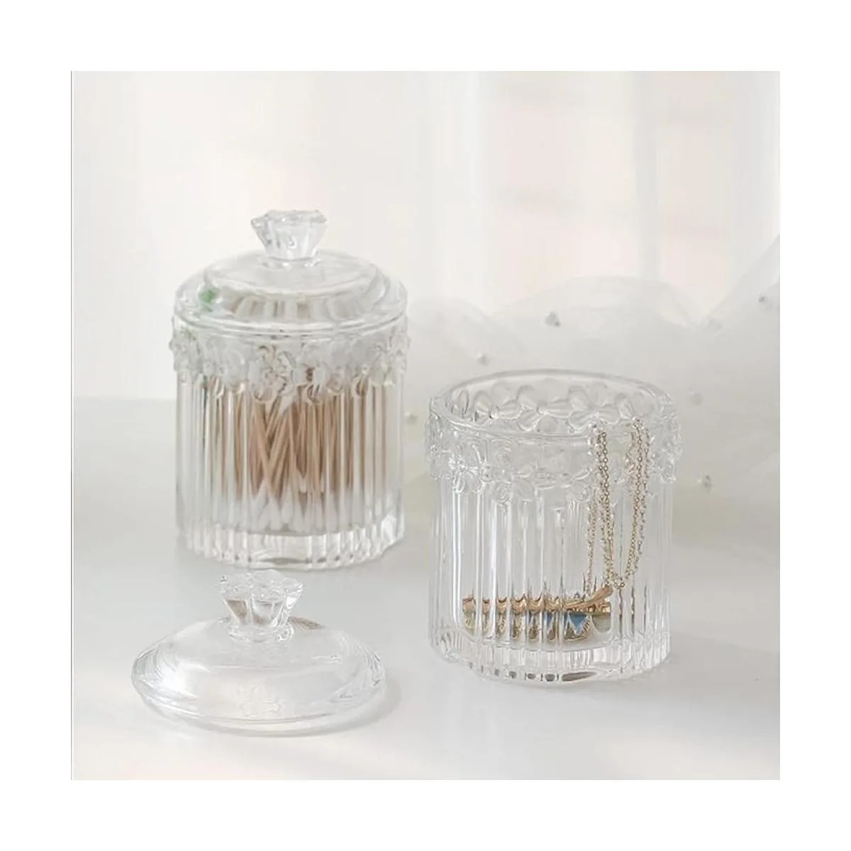 Organizador de baño: tarros de boticario con tapas, vidrio sin plomo, textura de cristal, estilo europeo, textura gruesa transparente, más pesado y más grueso que el vidrio ordinario, más seguro y duradero