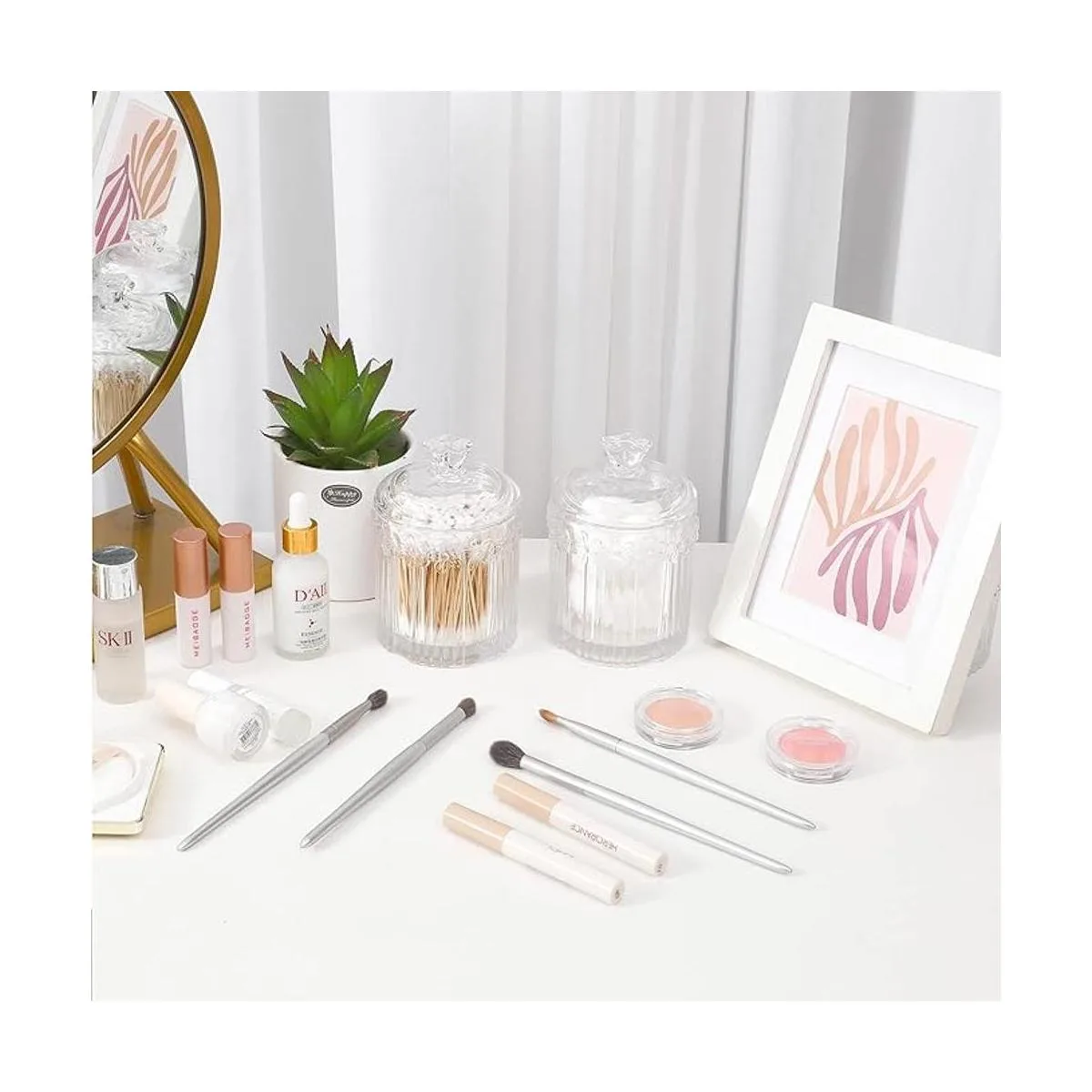 Con diseño de tapas resistente al polvo y al agua: juego de baño con soporte para qtip para un mejor cuidado para tus cosméticos, un tarro multiusos para satisfacer diversas necesidades, almacenamiento de objetos pequeños, hace que tu vida sea exquisita. Se puede utilizar para almacenar joyas, evita el frío repentino y el calor repentino, sin calefacción