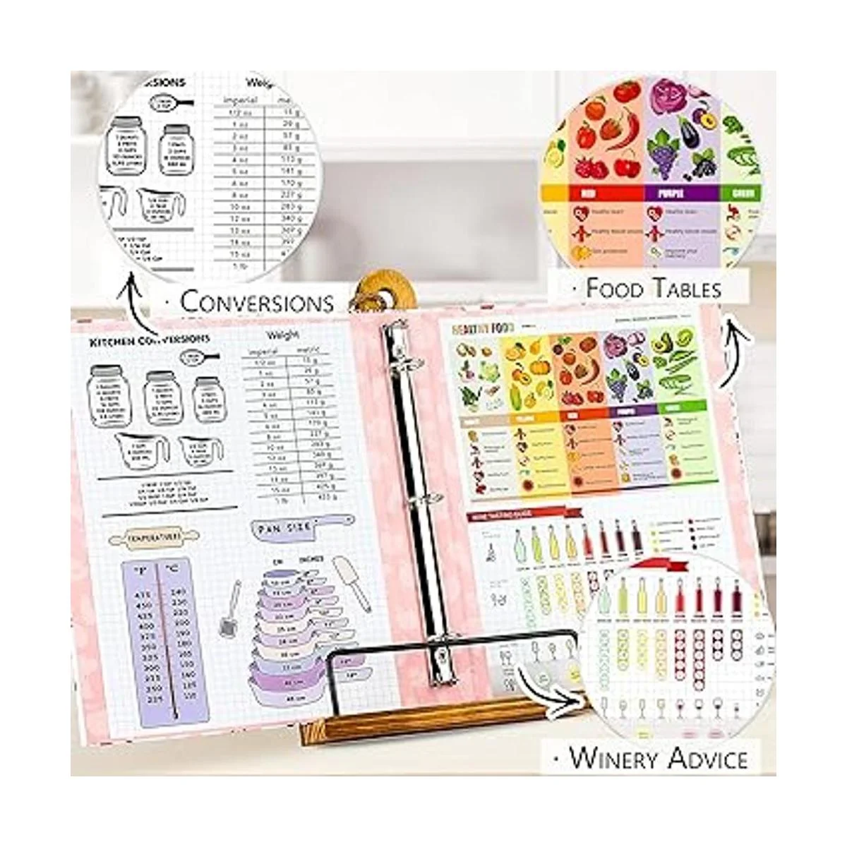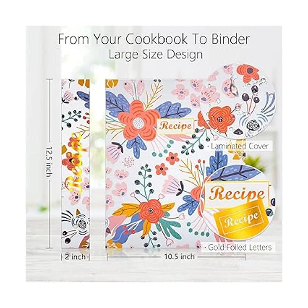 Carpeta de recetas con detalles estéticos: cada carpeta de recetas de libro de cocina está hecha de laminado resistente para protección contra derrames de cocina. Parte delantera y lateral estampada en lámina dorada Recetas para una búsqueda más rápida en el estante de la cocina. Las tarjetas de recetas, los separadores de carpetas y las páginas están hechas de papel de 10.58 oz/m para una experiencia de escritura limpia y ordenada, y es ideal para guardar preciosas recetas familiares y recuerdos.