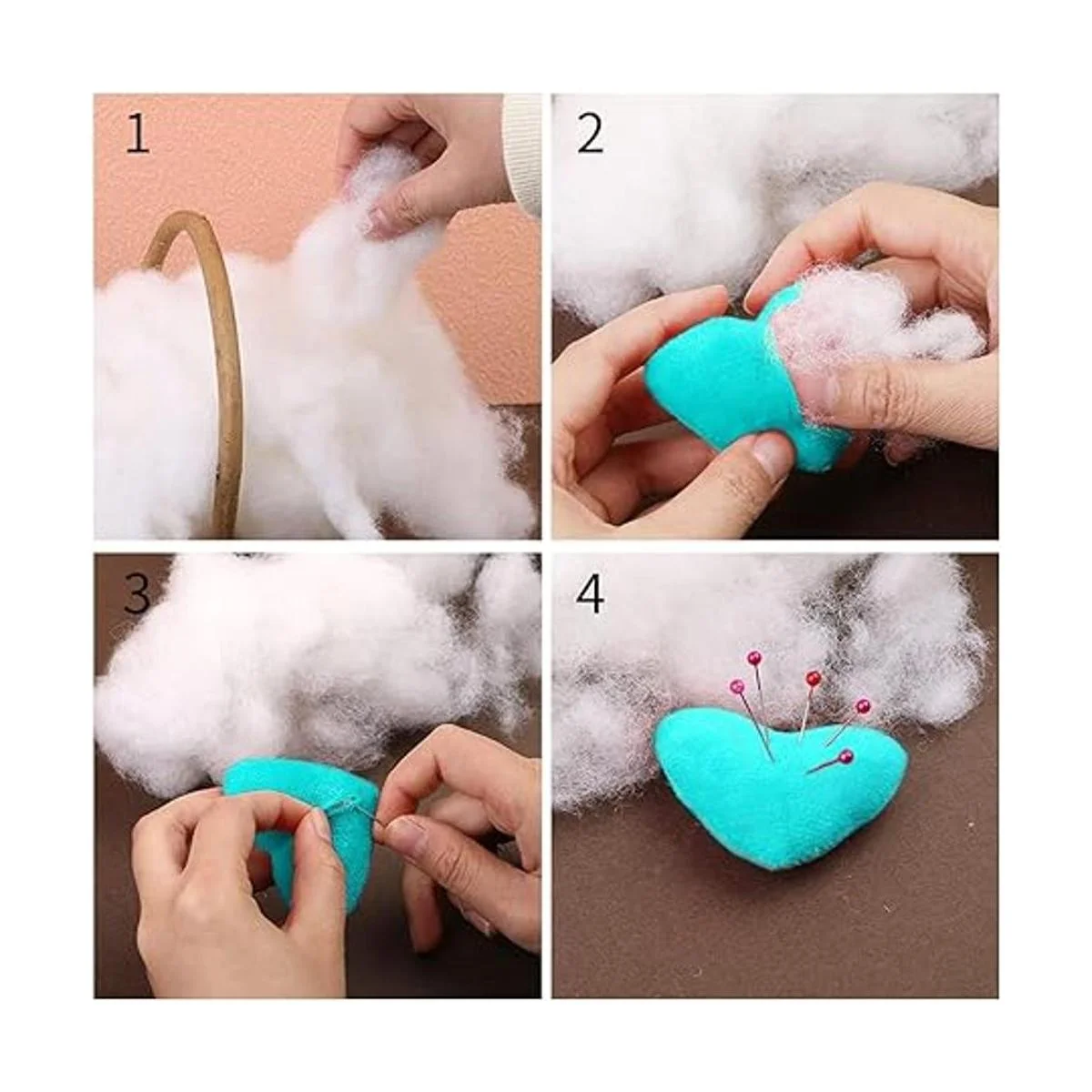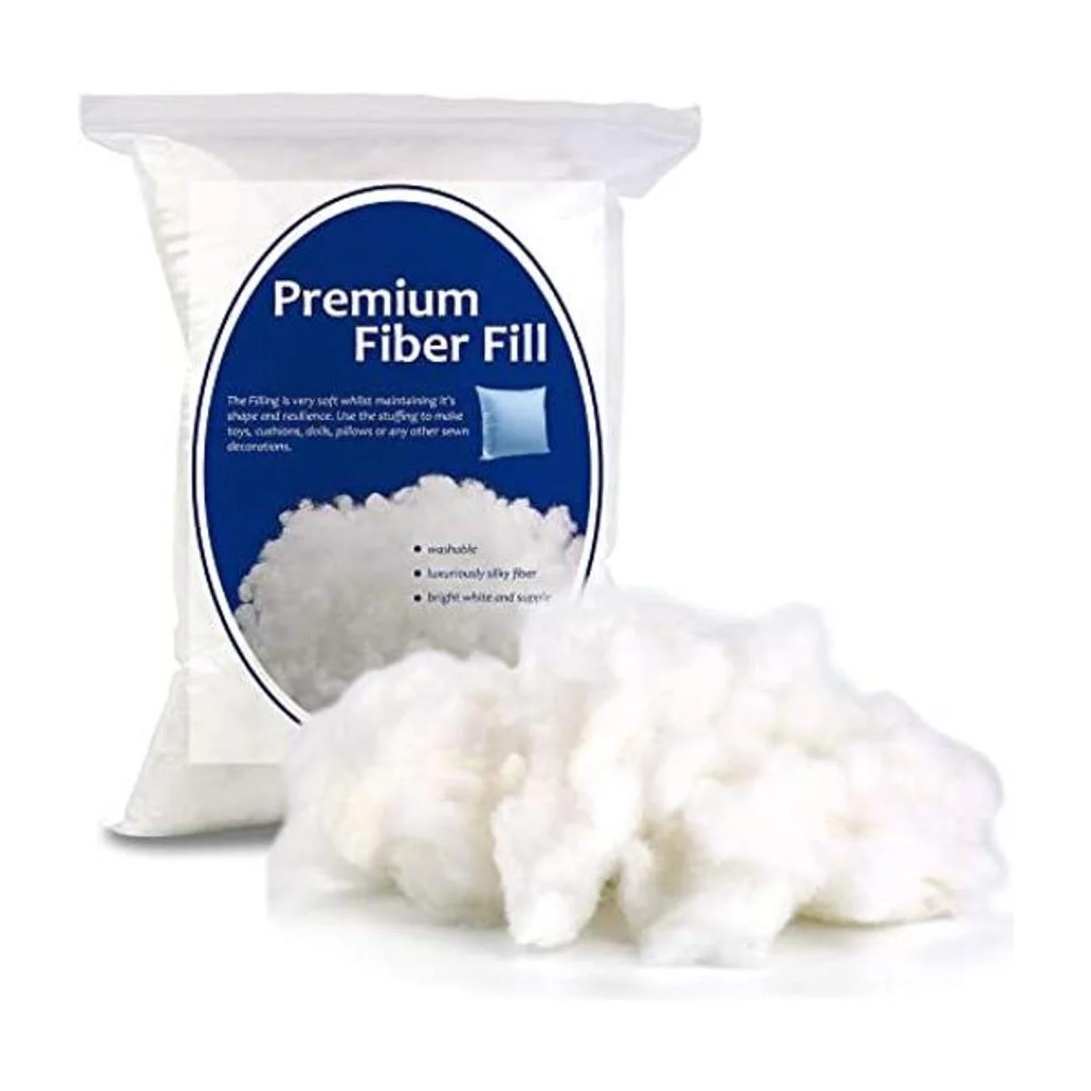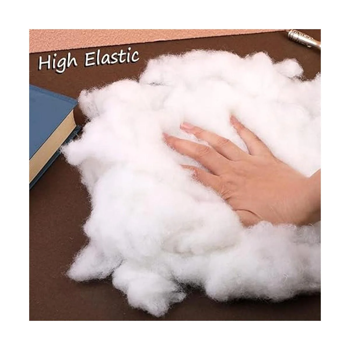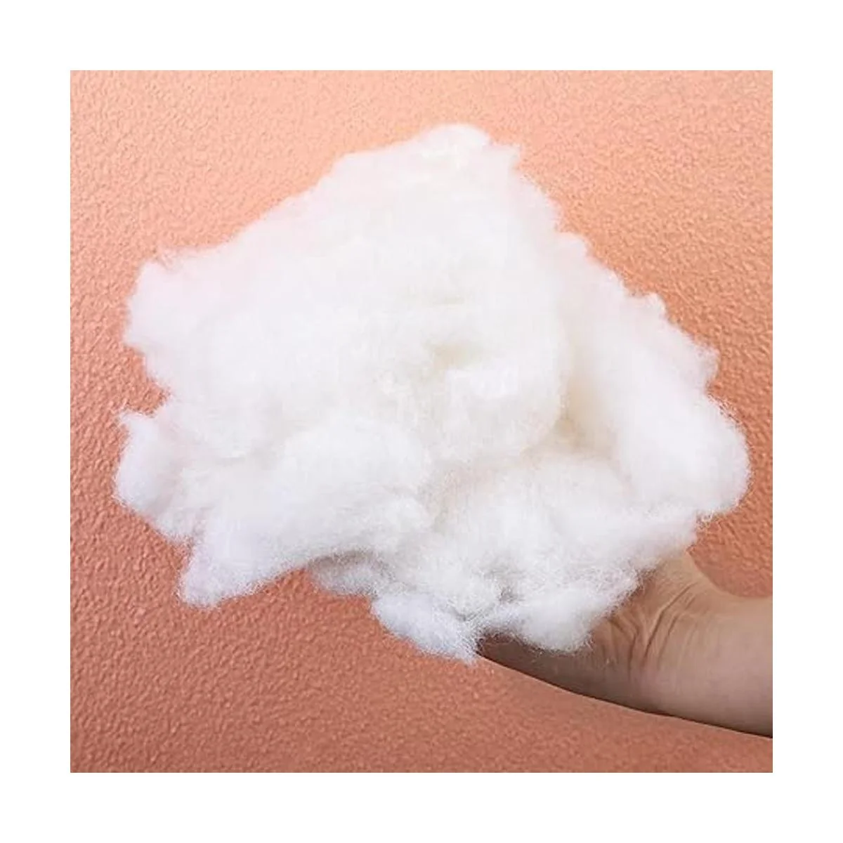 Amplia aplicación: el relleno de fibra para manualidades se puede utilizar para rellenar juguetes de peluche, almohadas, cojines de respaldo, rellenos de bricolaje, edredones de algodón, nidos de mascotas, textiles para el hogar y más proyectos que necesitan relleno de fibra.