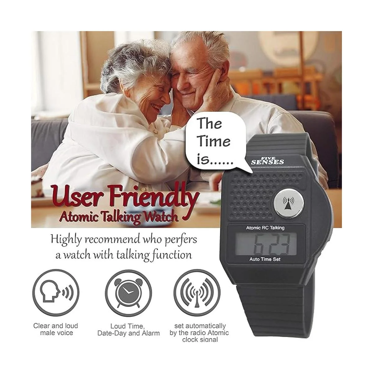 Reloj atómico inglés fácil de usar para personas mayores, ciegos, hombres y mujeres, reloj de sonido fuerte para personas con discapacidad visual 1026, Negro