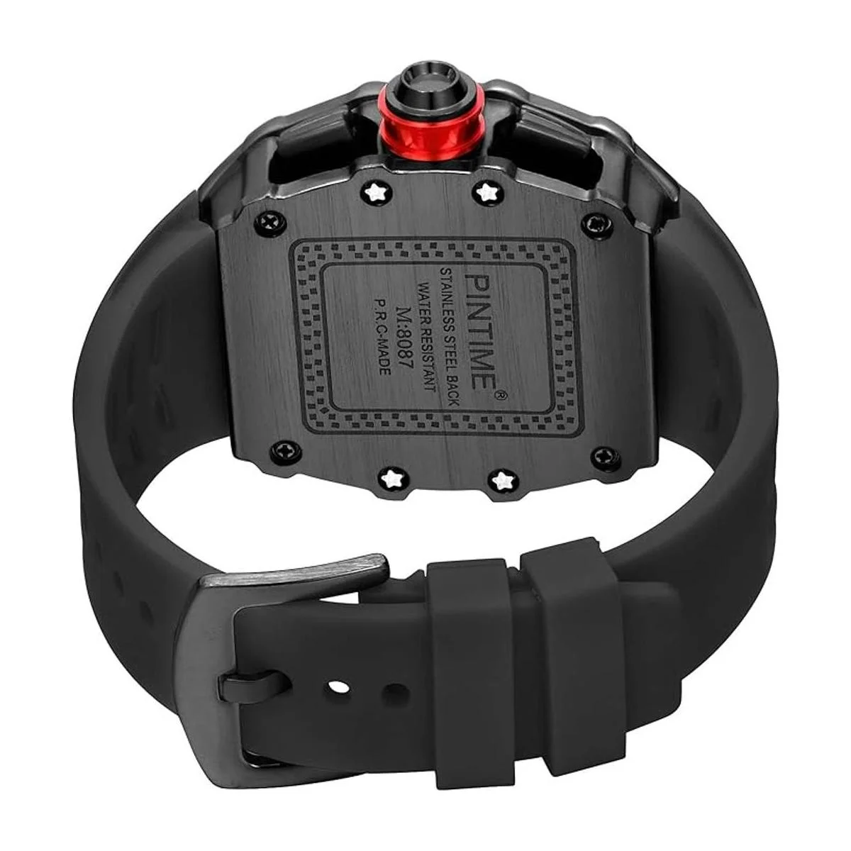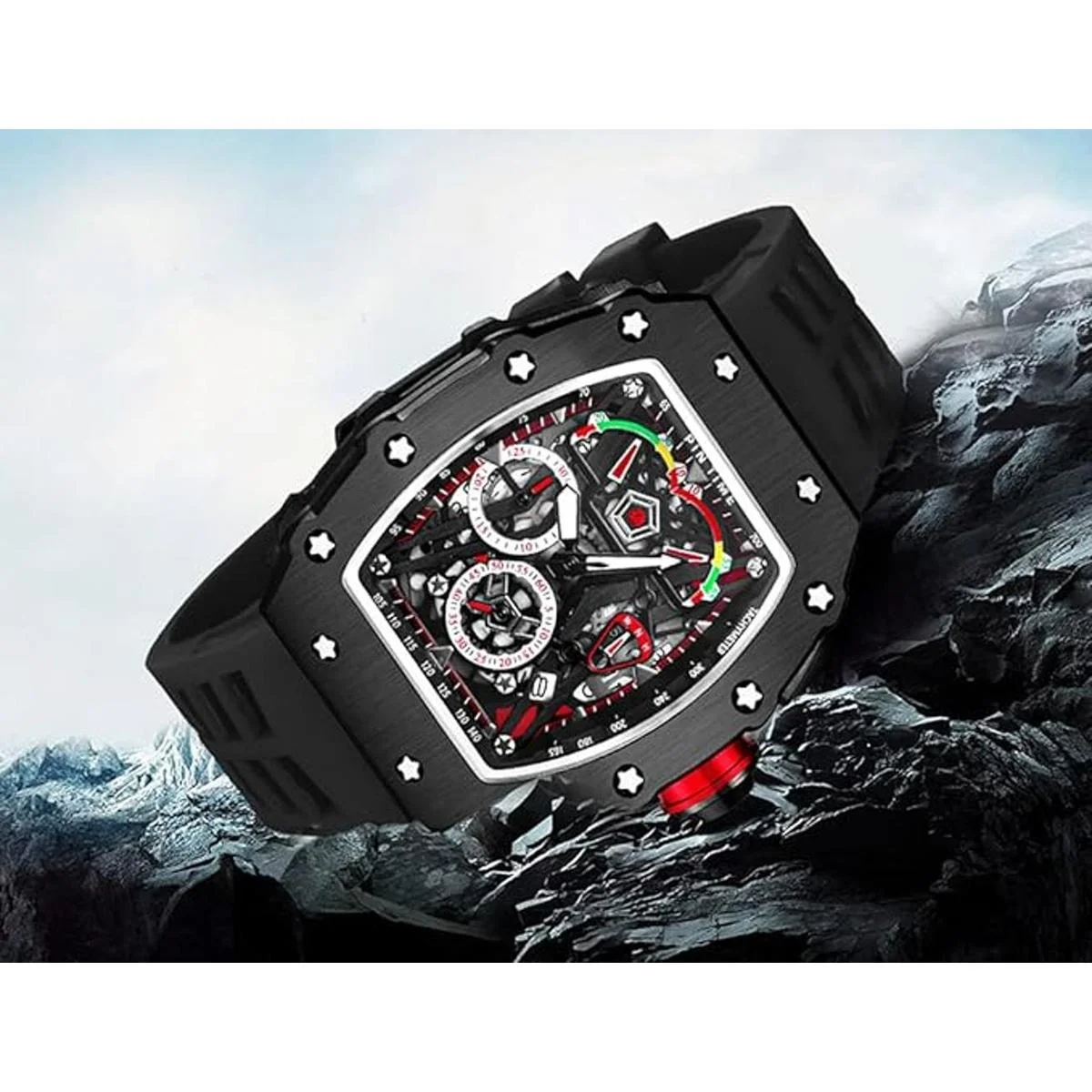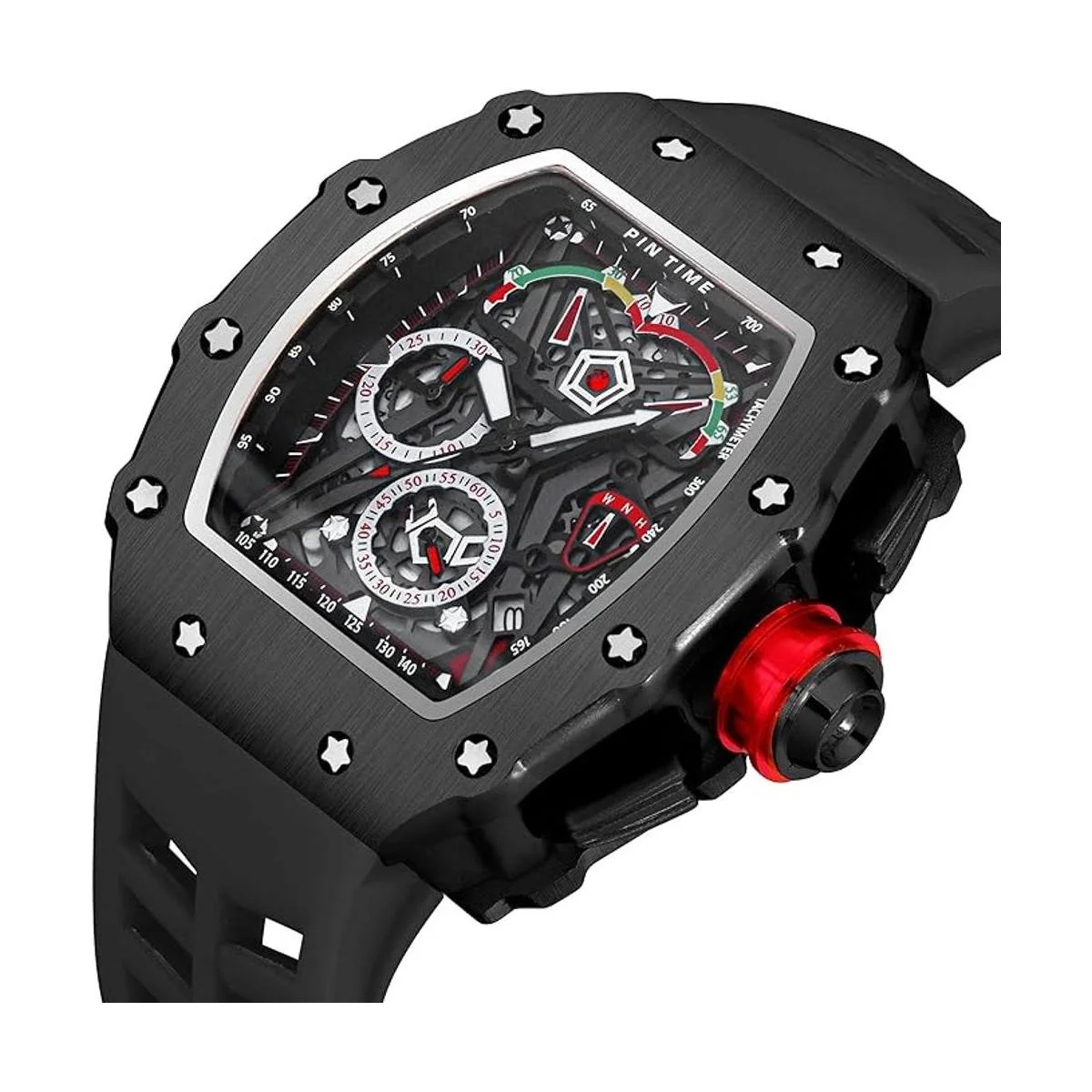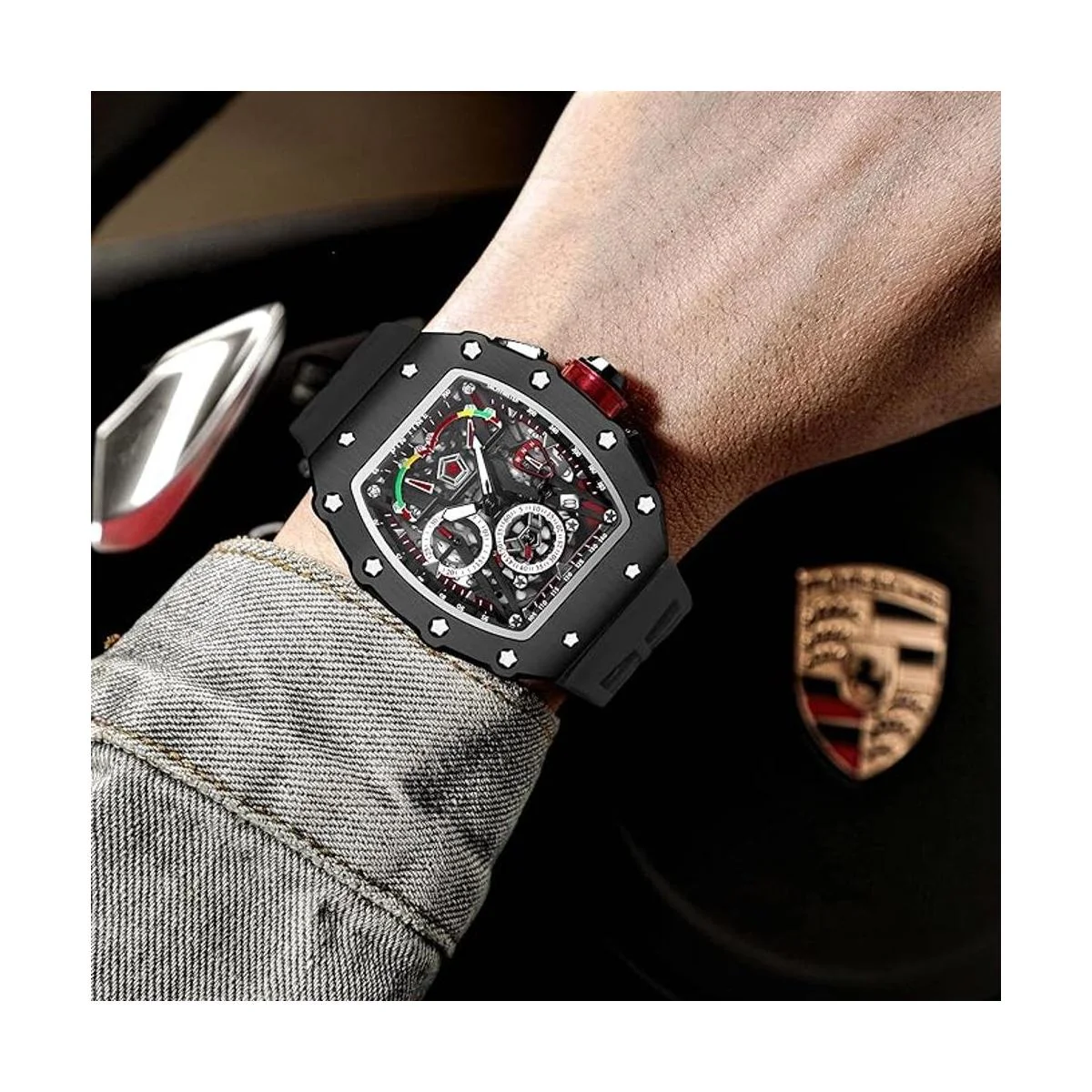 Reloj de correa de goma para hombre, diseño deportivo cuadrado y luminoso, con cubierta desmontable, analógico y punk, con cronógrafo, mecanismo japonés