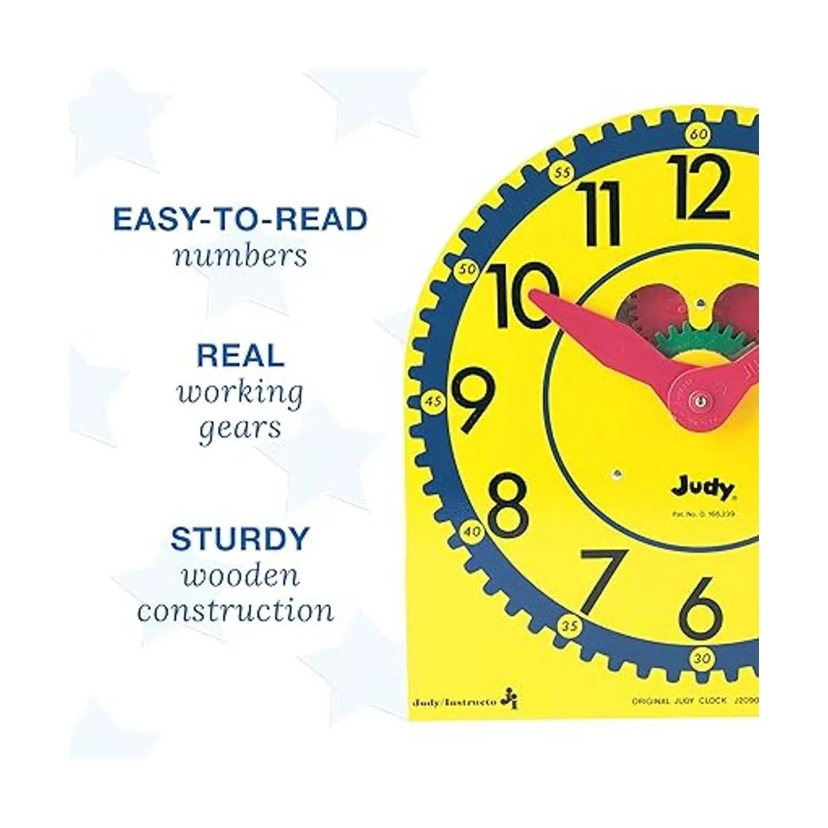 Judy reloj hace que aprender a decir tiempo simple y divertido para los niños. visible funcionamiento engranajes mantener correcta hora y minuto mano relaciones. números de fácil lectura muestra el tiempo transcurrido en cinco minutos intervalos la permanentemente montado madera reloj tiene un práctico soporte de metal y guía docente.
