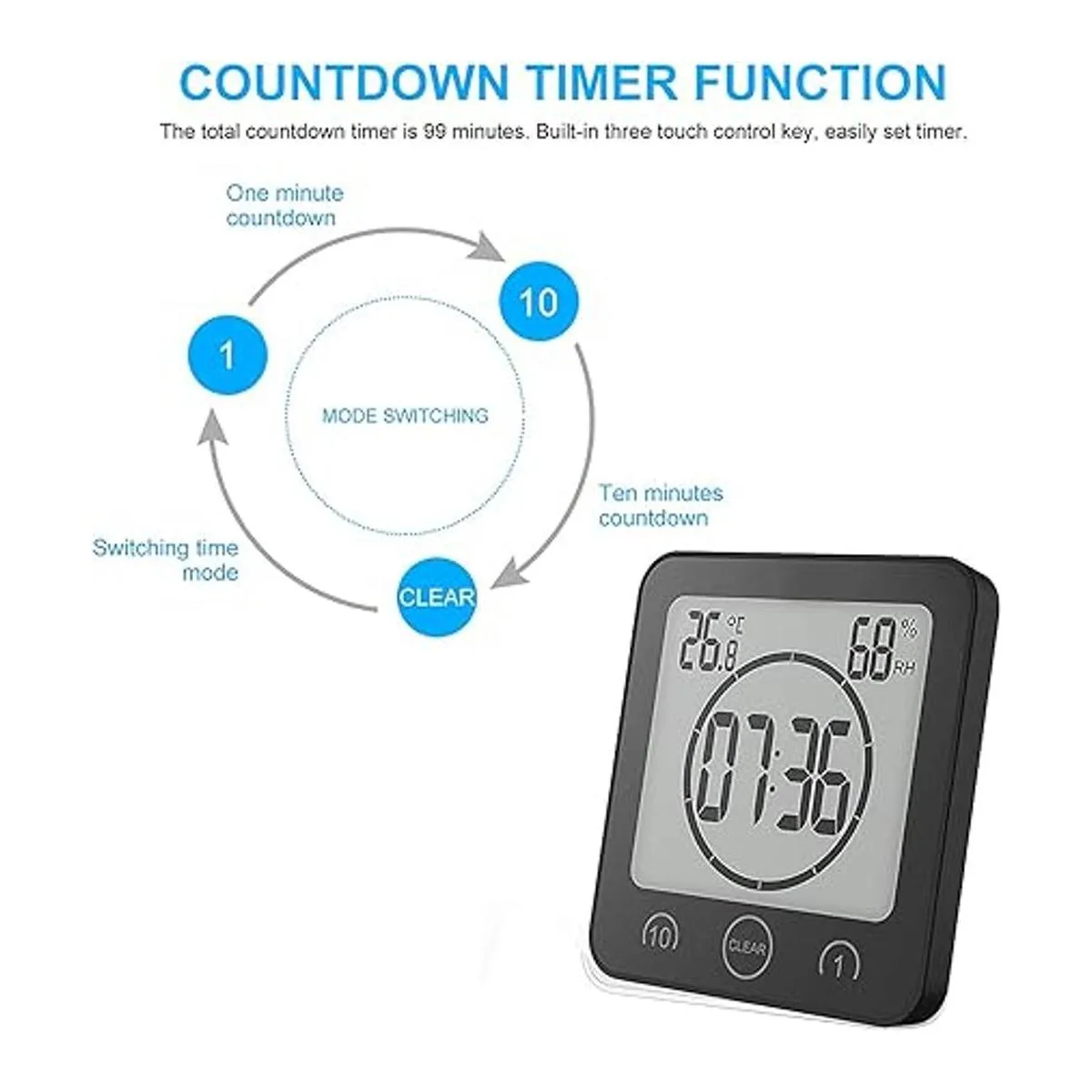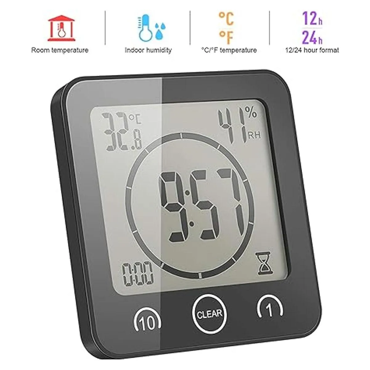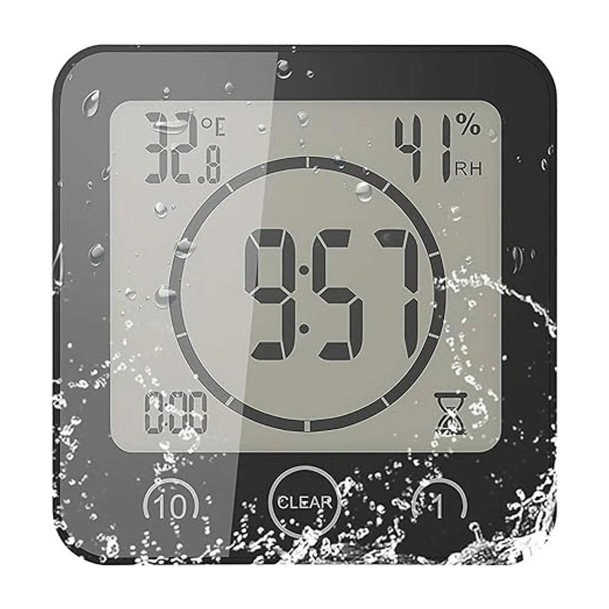 Reloj de pared de ducha impermeable Sunsbell digital de temperatura con ventosa, temporizador de pantalla táctil para cocina y baño negro