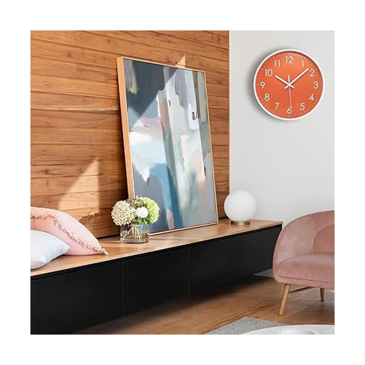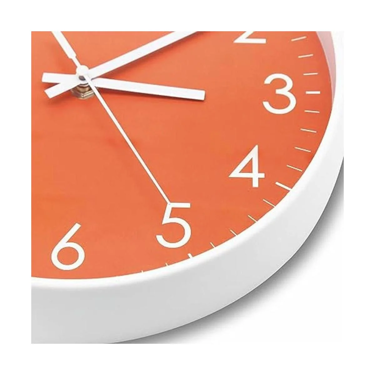 Reloj de pared Epy Huts, pequeño, de 10 pulgadas, funciona a pila, sin tictac, con movimiento de barrido silencioso, reloj para pared de cocina, dormitorio, baño, oficina, garaje, aula, naranja coral