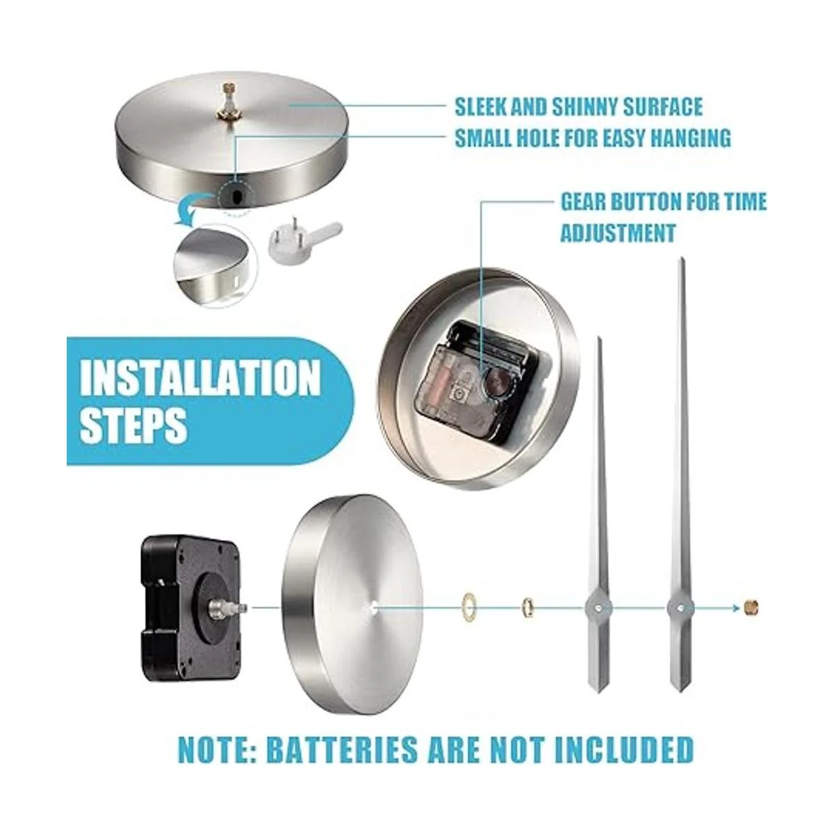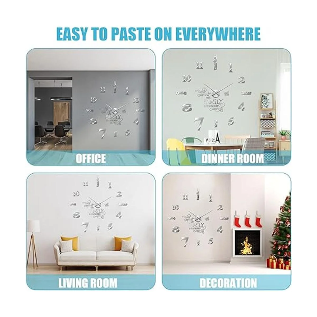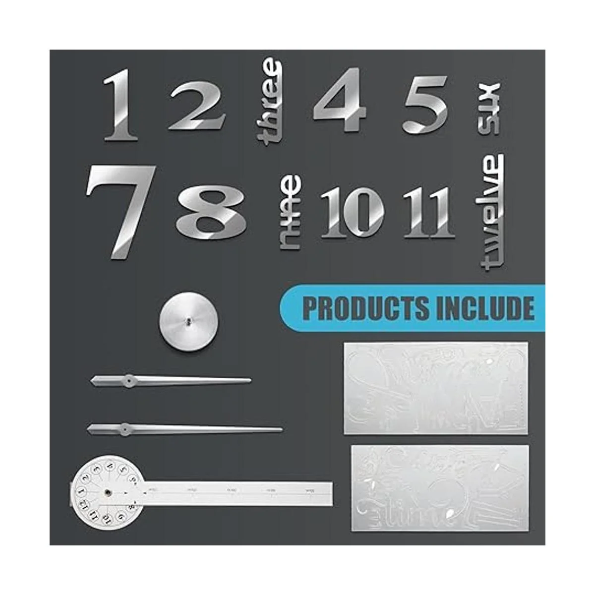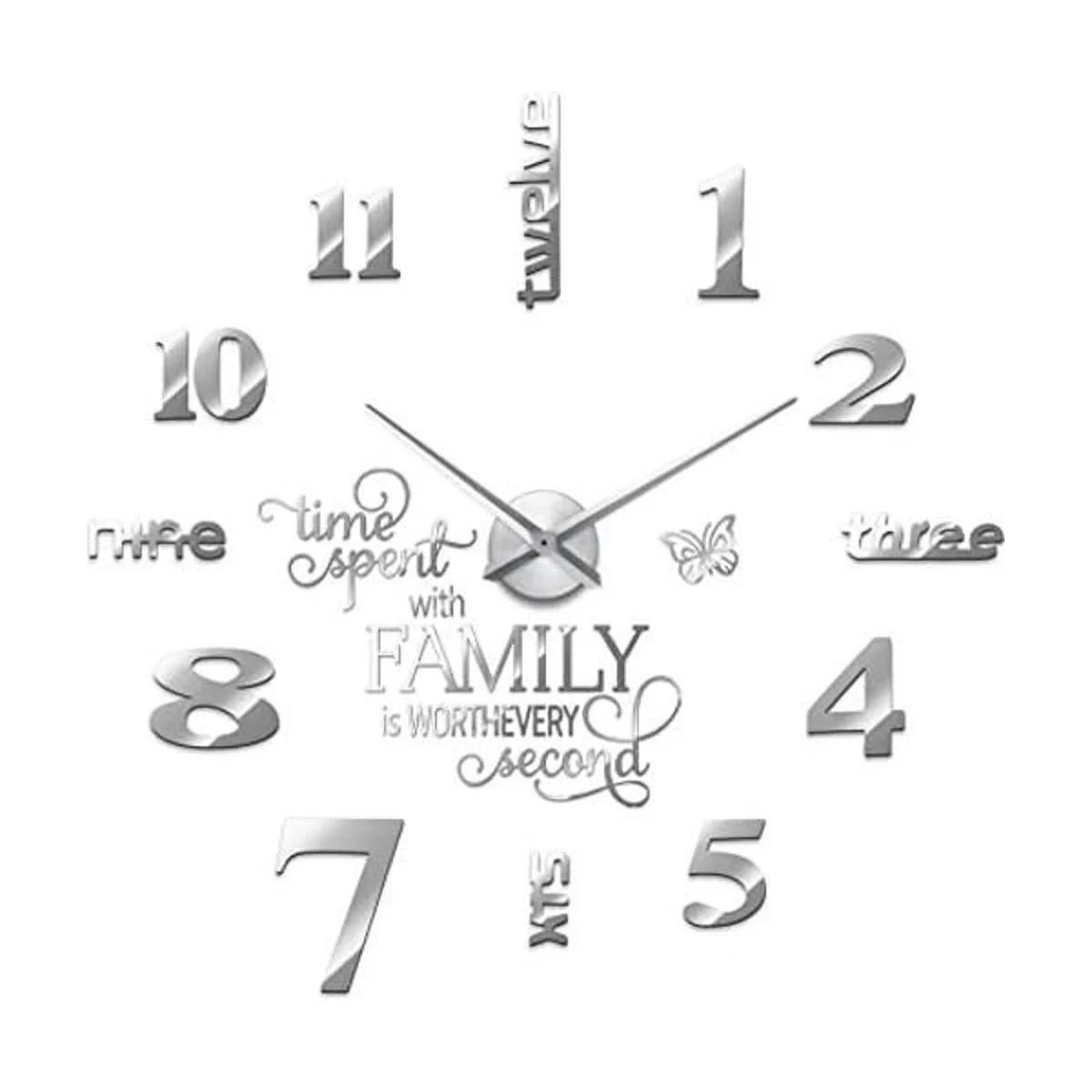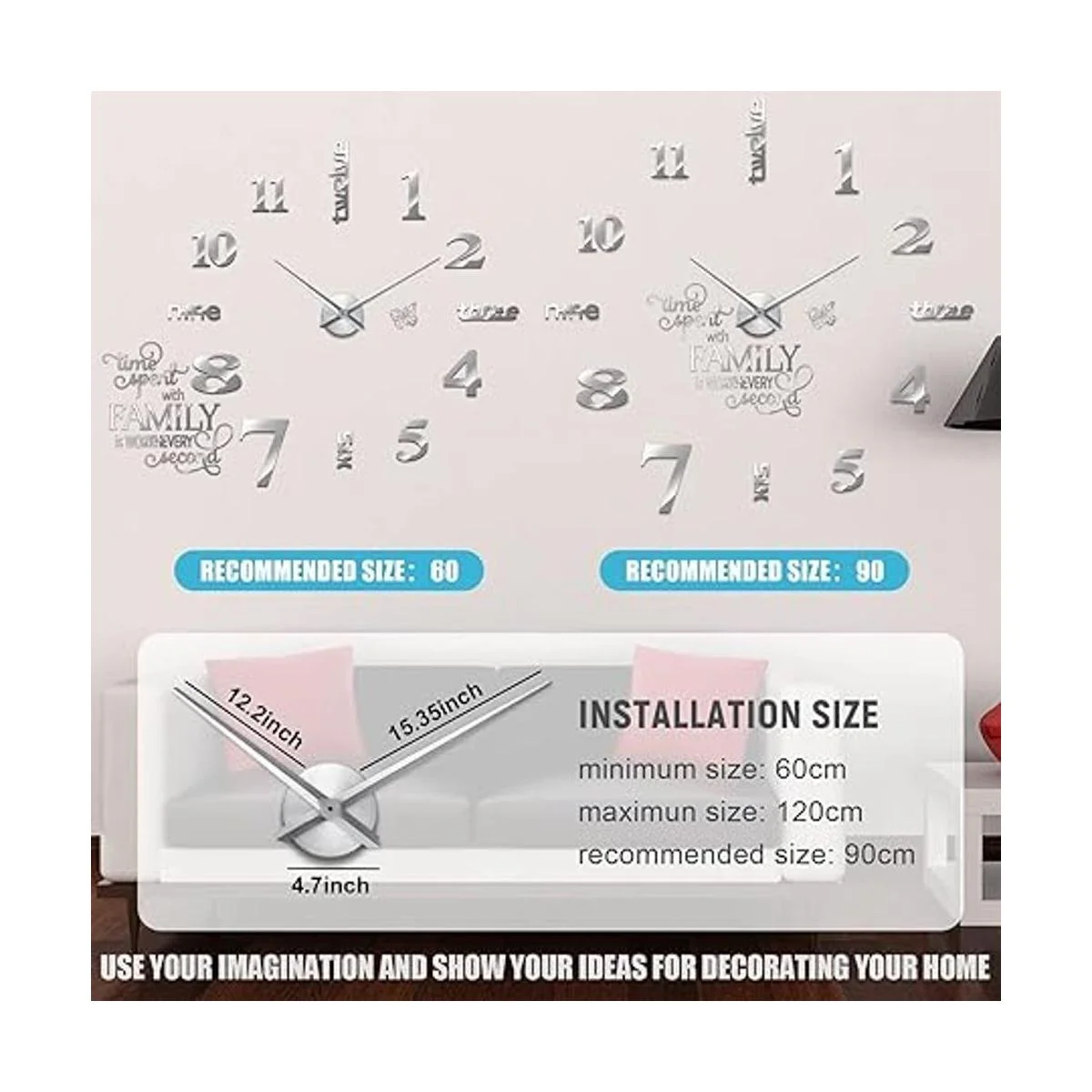 Reloj de pared grande 3D sin marco, decoración moderna familiar, kit de calcomanías de pared para hogar, sala de estar, dormitorio, oficina, decoración de pared tamaño ajustable plata