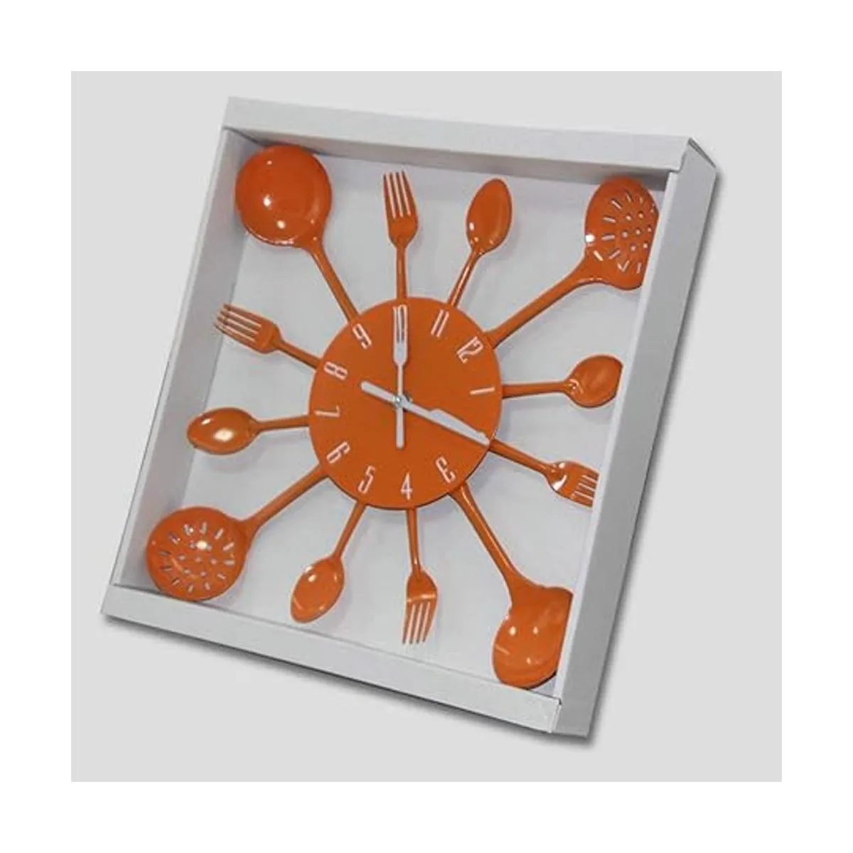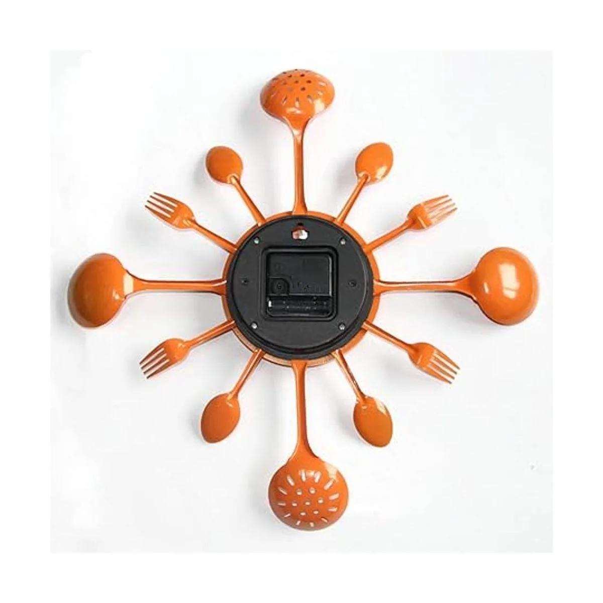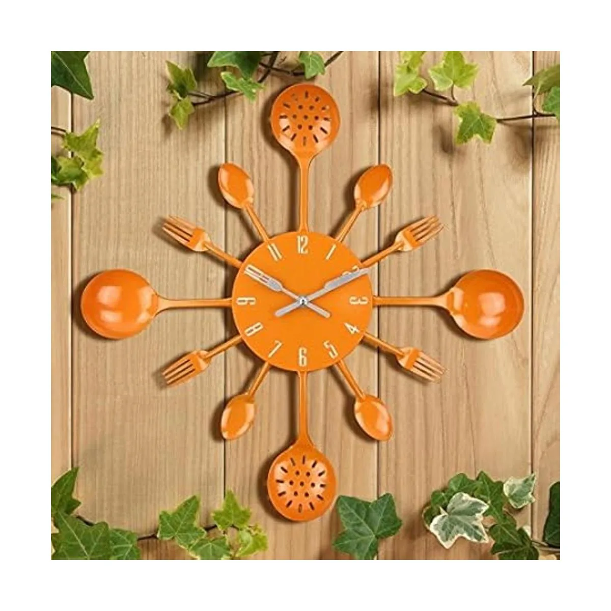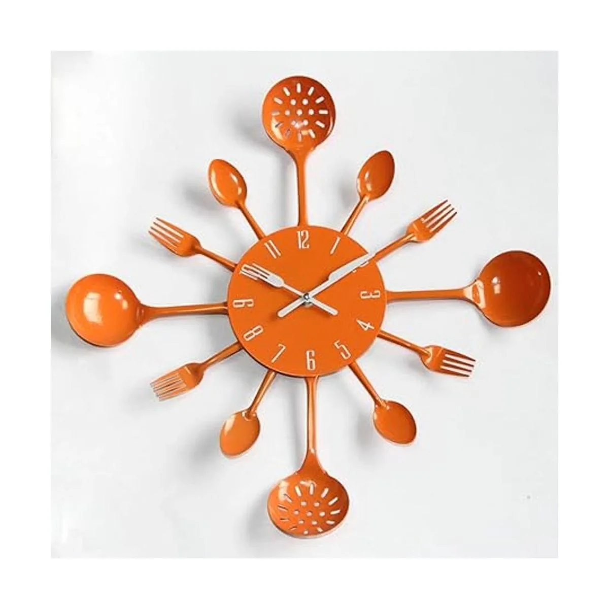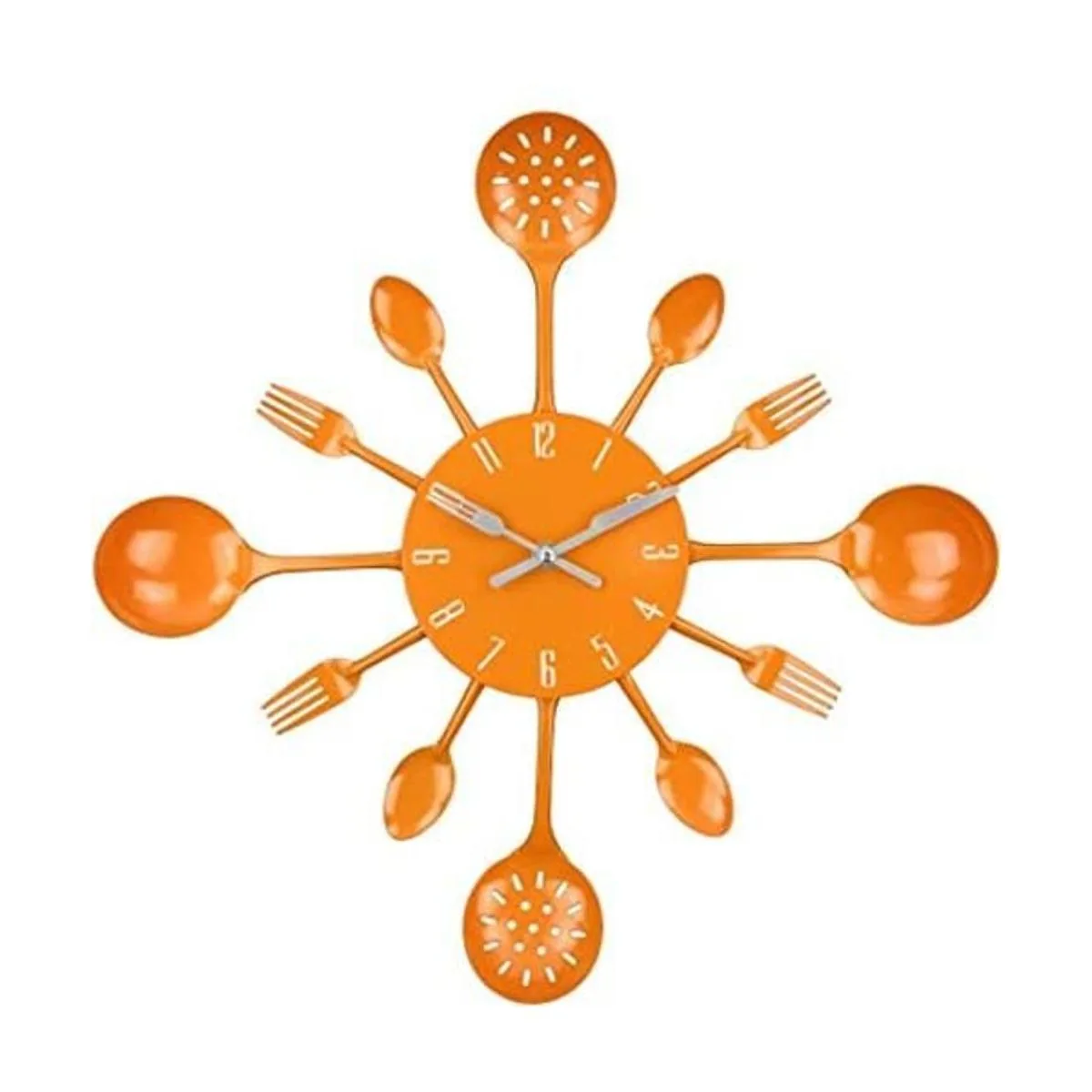 Reloj de pared, reloj de pared de metal de 16 pulgadas para cubiertos de cocina, cuchara, tenedor, reloj de pared creativo moderno para decoración del hogar, reloj de pared de estilo antiguo naranja