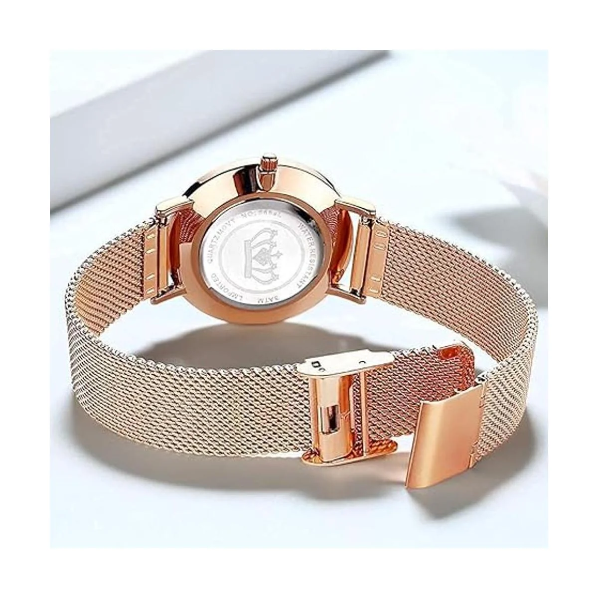 Reloj femenino minimalista: fácil de leer. Simple con cinturón de malla milanesa, utiliza un diseño de botón de gancho, proporciona una herramienta de ajuste libre. La longitud de la tira de malla se puede ajustar de acuerdo con el tamaño de la muñeca.