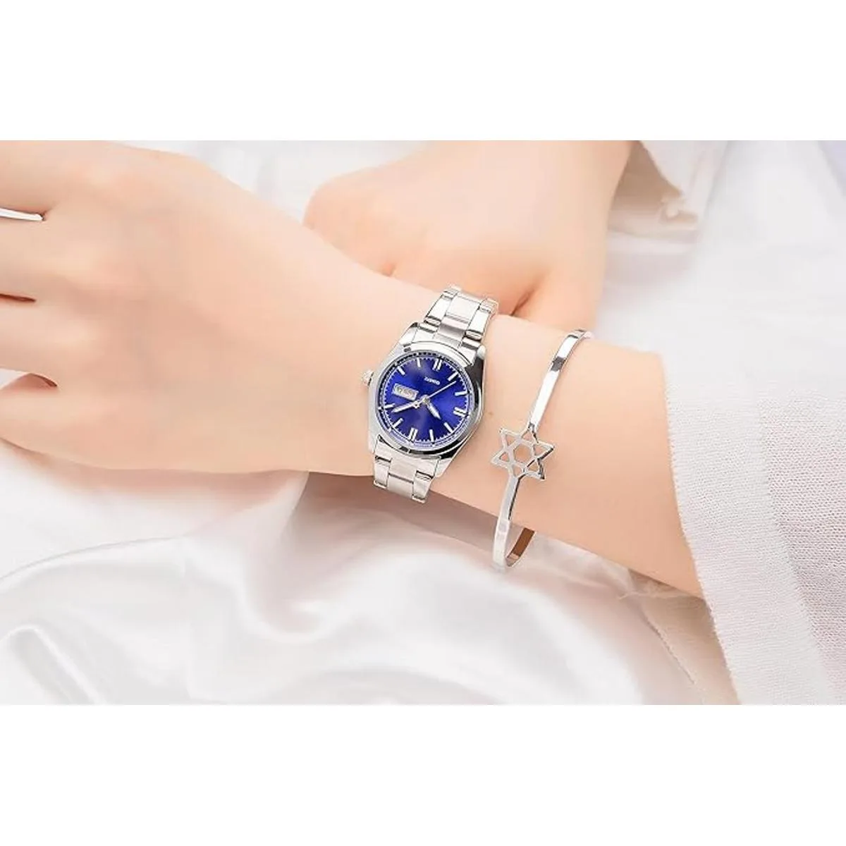 Reloj de pulsera de cuarzo para mujer, luminoso, resistente al agua, con calendario, reloj de cuarzo de acero inoxidable