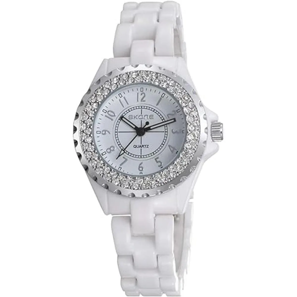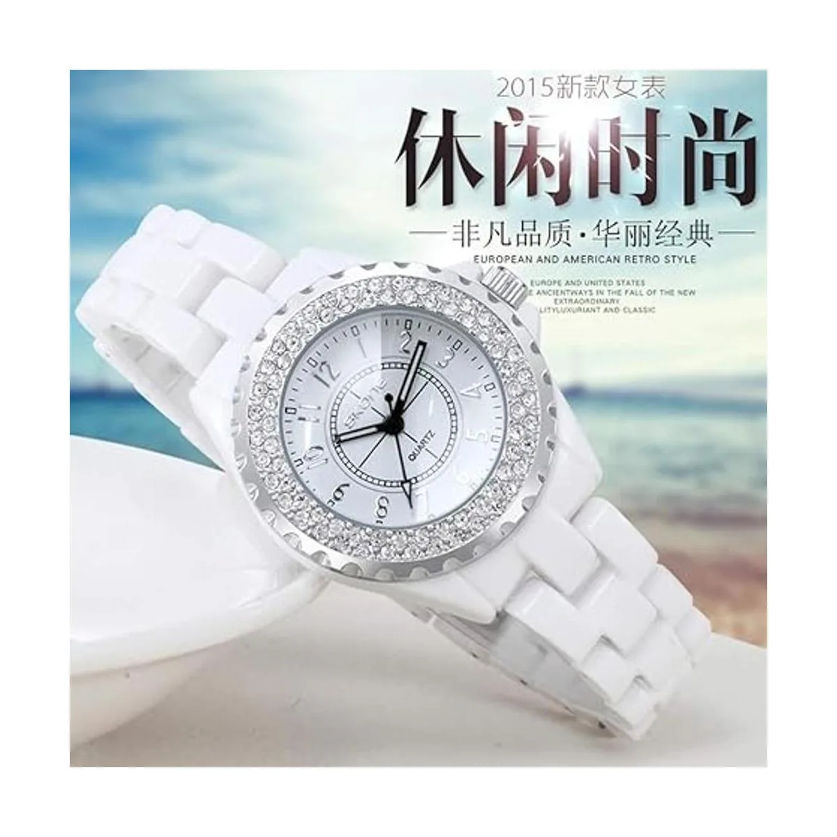 Reloj de pulsera de lujo para mujer, con diamantes de imitación, de cerámica, color blanco, casual, bonito vestido, Rose gold, Movimiento de cuarzo
