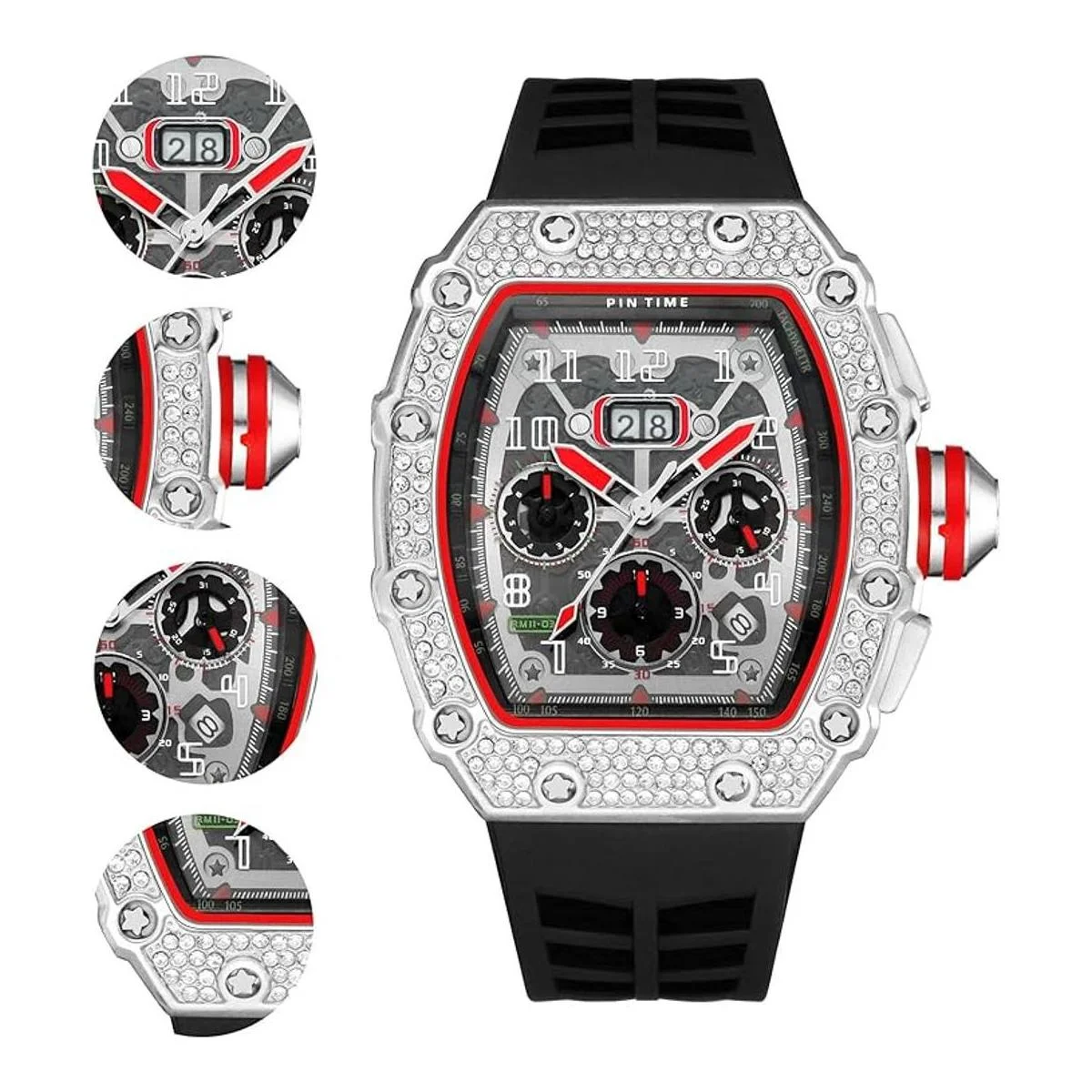 Reloj de pulsera deportiva con diamantes punk, estilo moderno, con correa de silicona