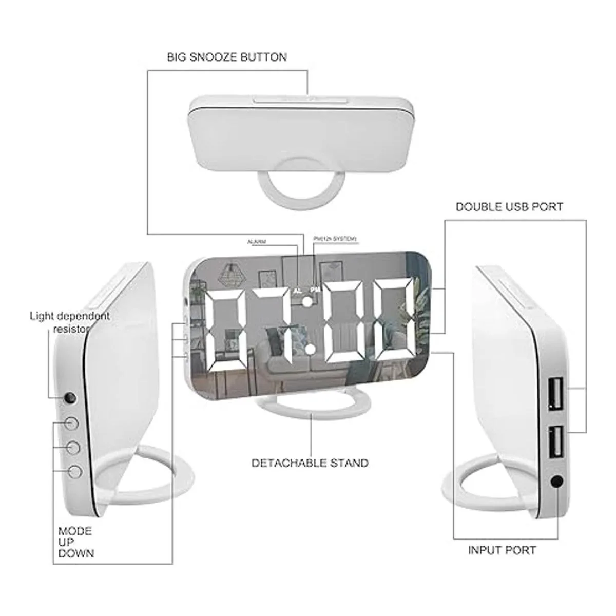 Reloj despertador digital, pantalla LED grande de 6 pulgadas con puertos de cargador USB duales, modo de atenuación automática, función de repetición fácil, reloj de pared de escritorio moderno espejo para dormitorio, hogar, oficina, para todas las personas