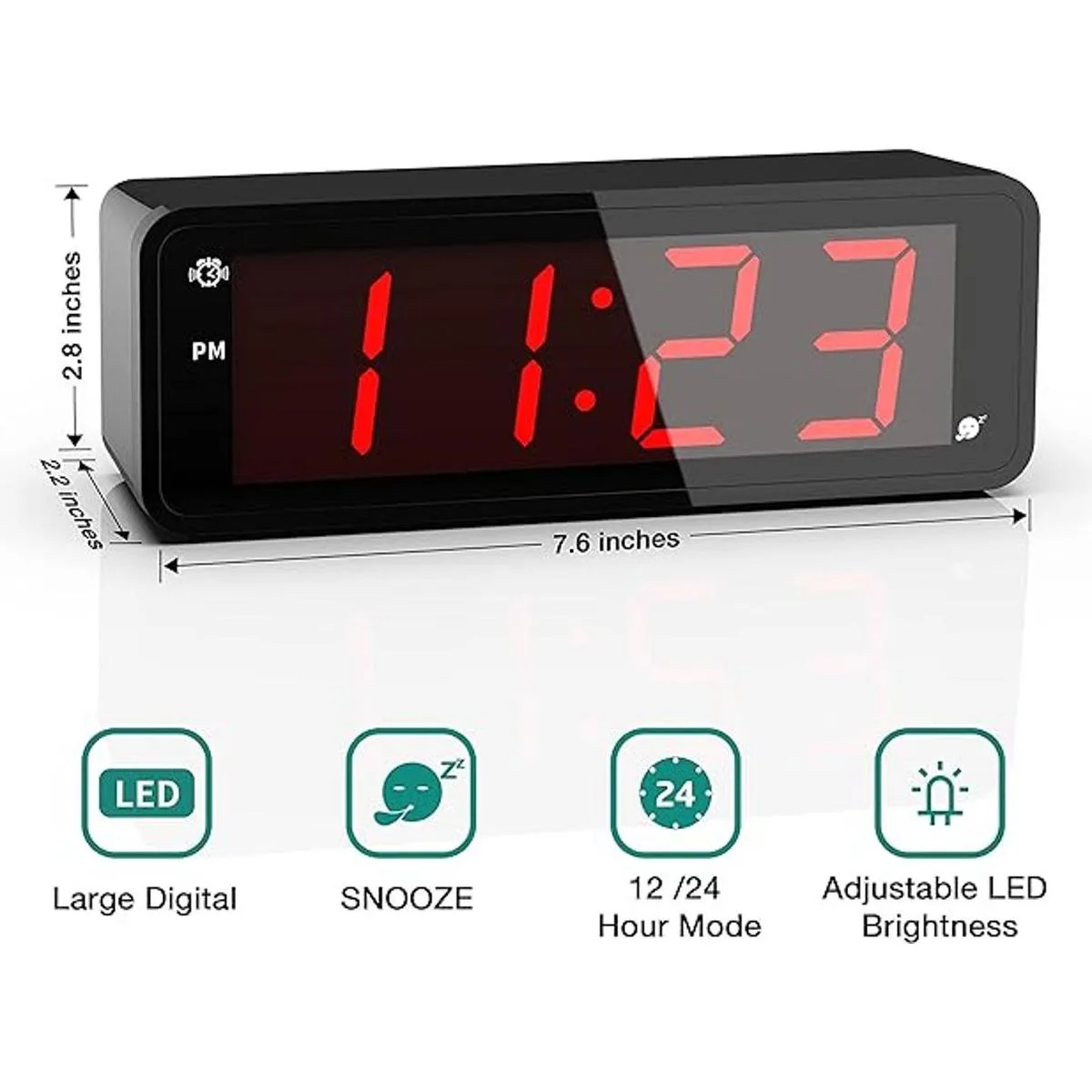 Reloj despertador, pantalla grande de números LED de 1.8 pulgadas, brillo LED ajustable, funciona con pilas, 1224 horas, repetición, claramente visible día y noche, reloj despertador fuerte para personas que duermen pesados, adultos, niños, ancianos