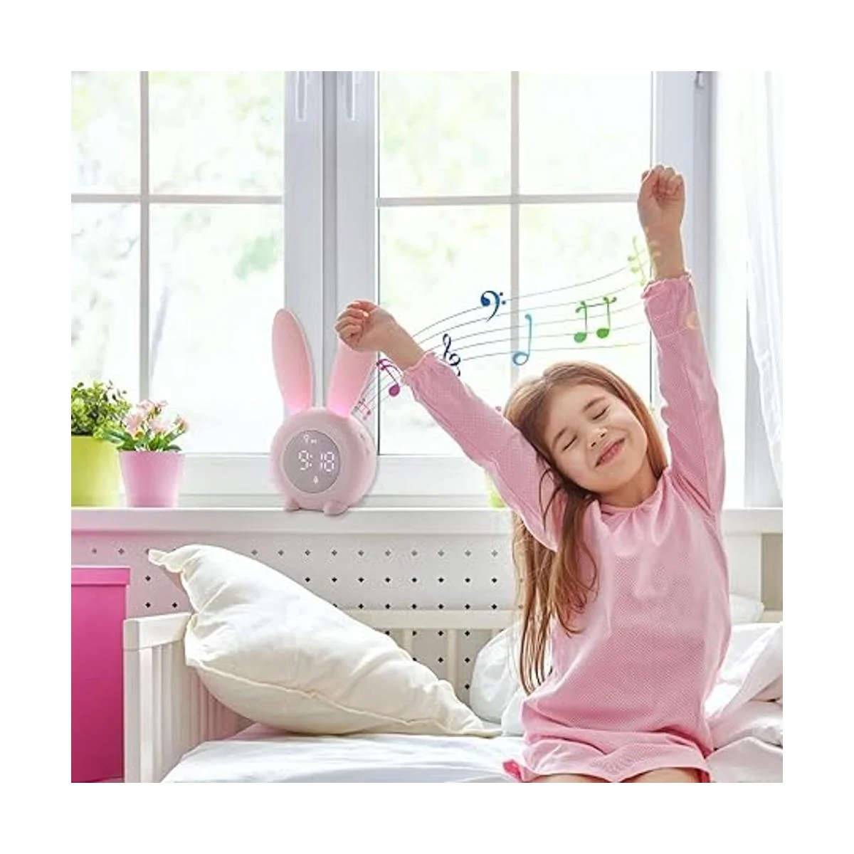 Reloj de entrenamiento para dormir: el bonito reloj despertador diseñado con conejo utiliza material de silicona respetuoso con el medio ambiente y seguro, que se siente suave y cómodo. El reloj despertador con luces suaves y coloridas, es una opción imprescindible para entrenar a los niños para desarrollar buenos hábitos de sueño.