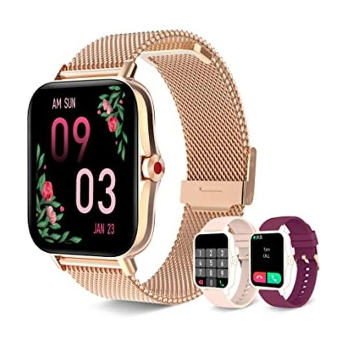 Relojes inteligentes para mujer: marco de metal ultrafino con pantalla táctil HD de 1.7 pulgadas que ofrece un tacto suave y una excelente experiencia visual. La tienda de dial tiene más de 100 diales gratis para que elijas, también puedes cambiar tu imagen favorita como una esfera de reloj con un solo clic. Viene con 3 bandas, la de acero inoxidable de oro rosa es exquisita, mientras que las bandas de silicona rosa y burdeos son más casuales, cambia entre elegante y deportiva, enciende tu pasión por la moda