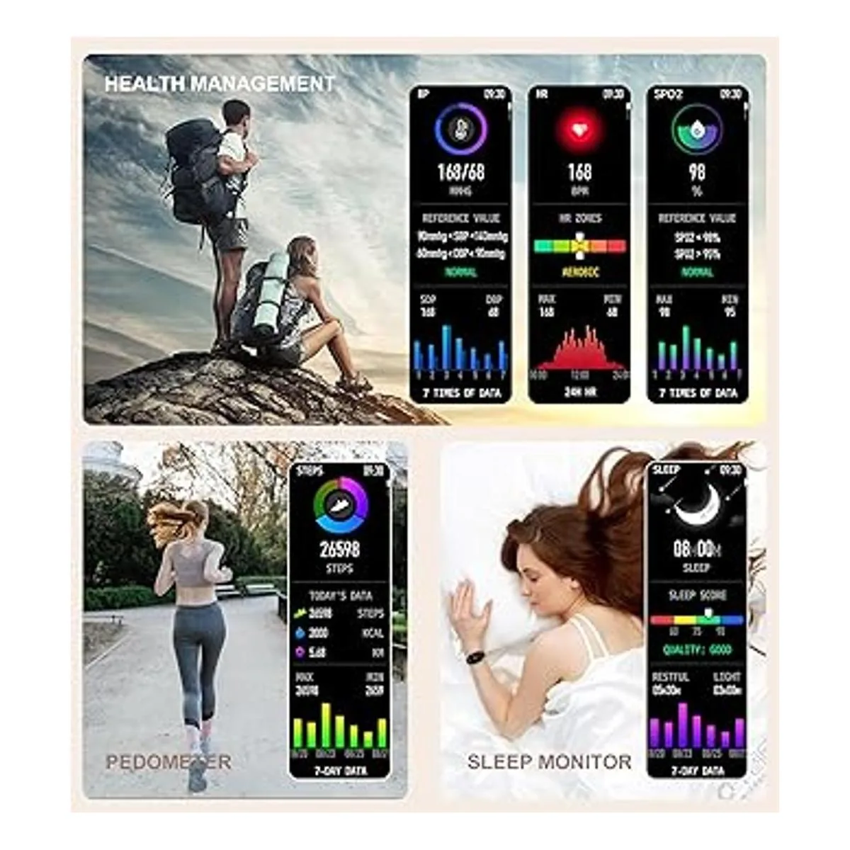 Monitoreo de salud completo: este reloj inteligente puede detectar tu frecuencia cardíaca 24/7, presión arterial y oxígeno en sangre para obtener una mejor comprensión de tu salud no para uso médico. El sensor de movimiento de alto rendimiento monitorea el estado de sueño automáticamente y proporciona un análisis completo de calidad del sueño sueño profundo, sueño ligero y despertador. También puedes utilizar el ciclo fisiológico femenino, recordatorio de bebidas y recordatorio de sedentarismo para ayudarte a hacer un ajuste razonable en tu estilo de vida.