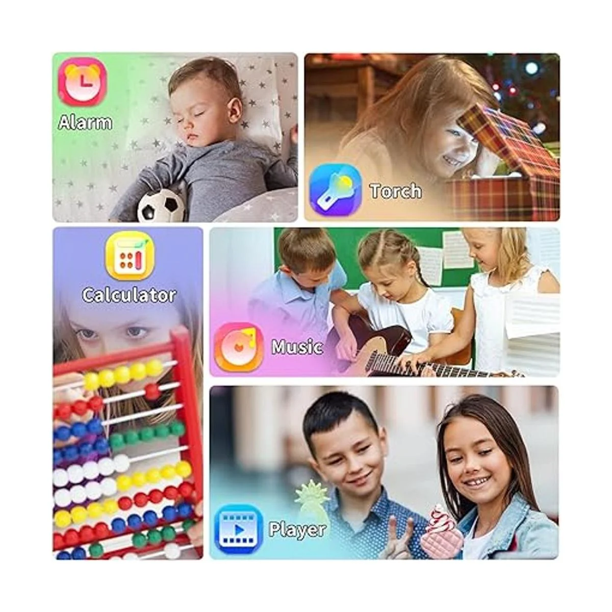 Divertida cámara de selfies y vídeo El reloj inteligente con pantalla táctil para niños soporta perfectamente la cámara y el video. Los niños generalmente utilizan VCRS cámaras mágicas para grabar cada momento feliz de sus vidas. Establece tu foto favorita como papel pintado. El reloj para niños es capaz de almacenar más de 5000 fotos HD o más de 6 horas de video.
