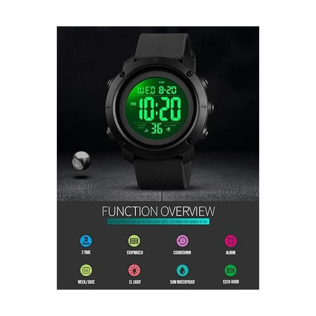 Reloj para niños grandes, digital, impermeable, militar, luz trasera, para adolescentes, color negro, 1426, Negro, 1.77 Inch, Digital