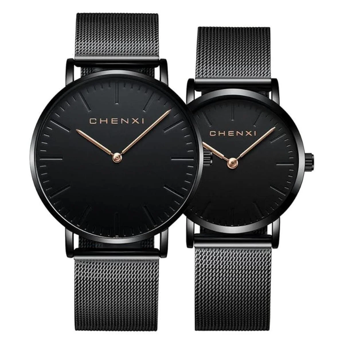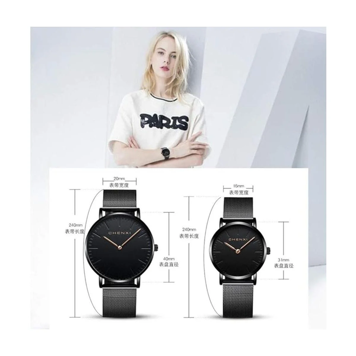 Reloj ultra fino y simple para parejas para él y ella, correa de malla de acero inoxidable, par de relojes de cuarzo para hombres y mujeres