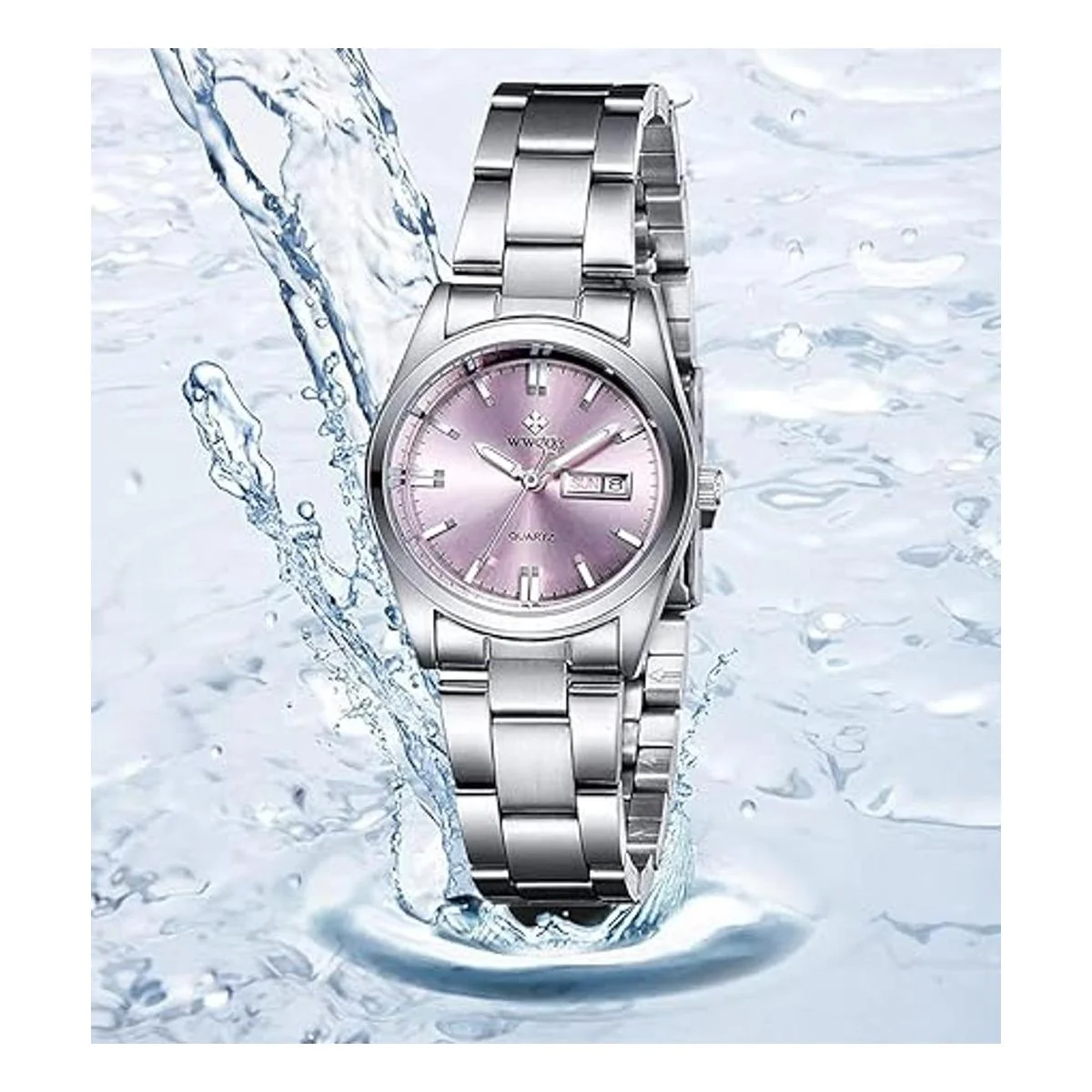 Relojes analógicos de cuarzo plateado de acero inoxidable para mujer, reloj de vestir impermeable luminoso