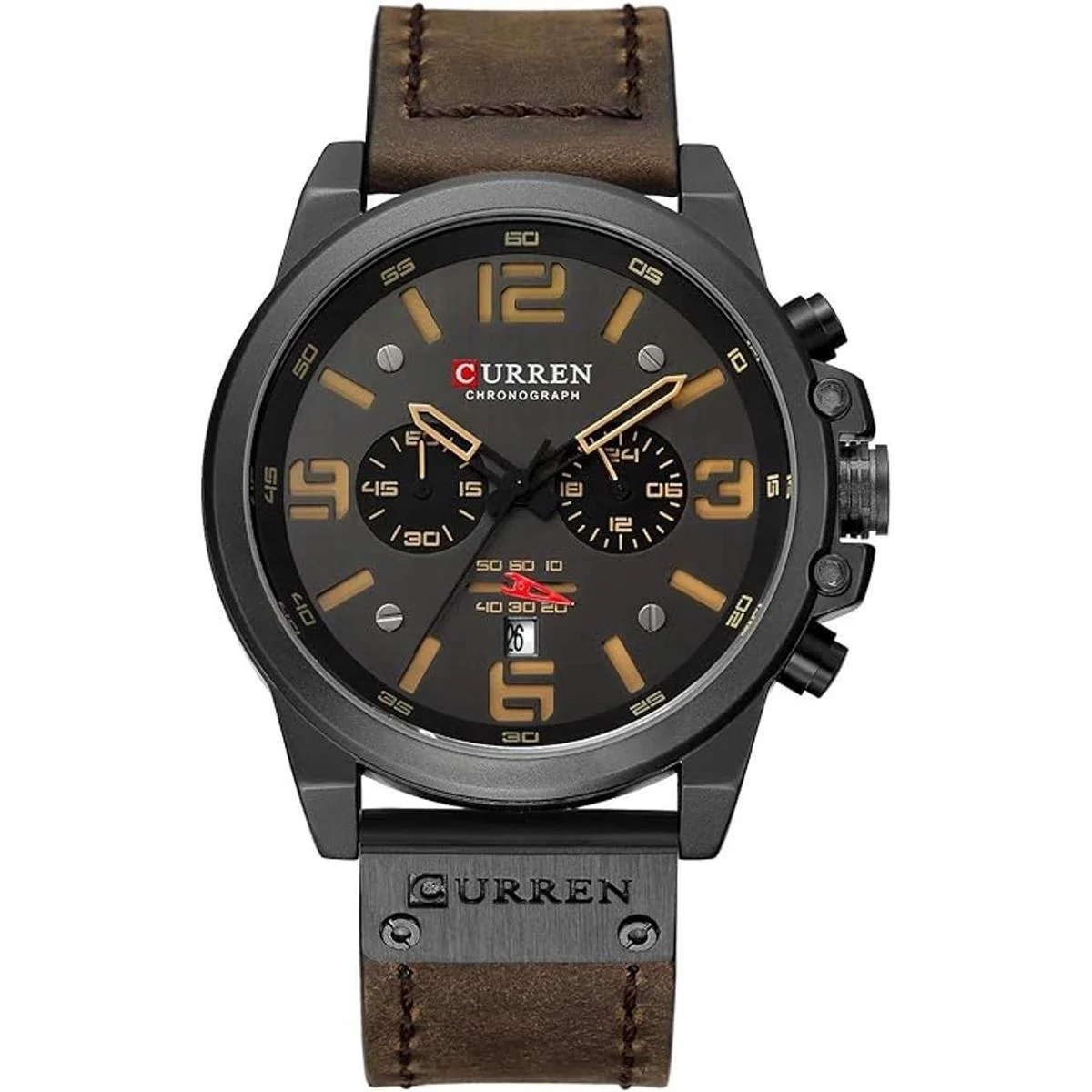 Relojes con correa de cuero para hombre, cronógrafo, clásico, negro, casual, caja de acero inoxidable, impermeable, fecha, analógico, cuarzo, multifunción, reloj militar, Moda deportiva militar