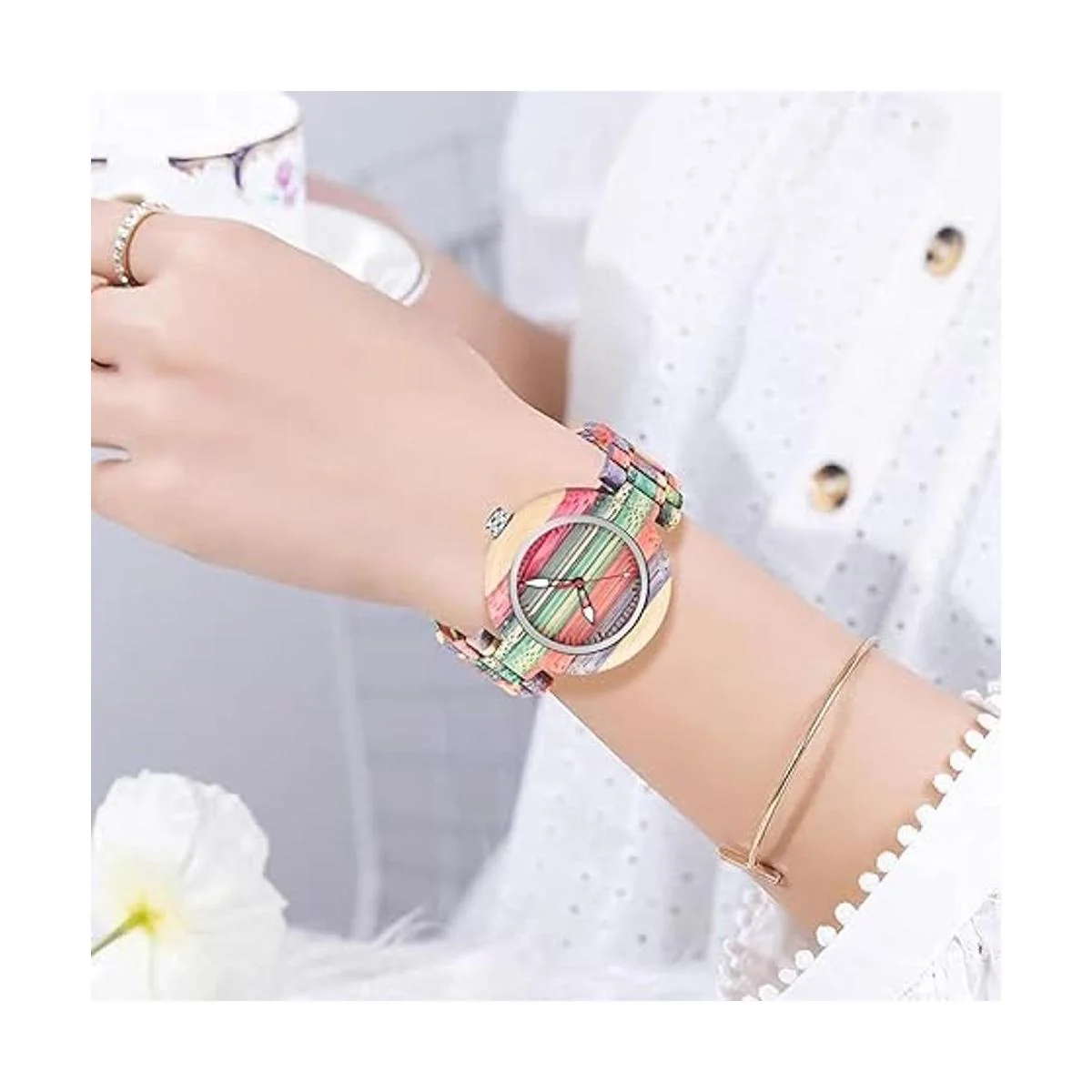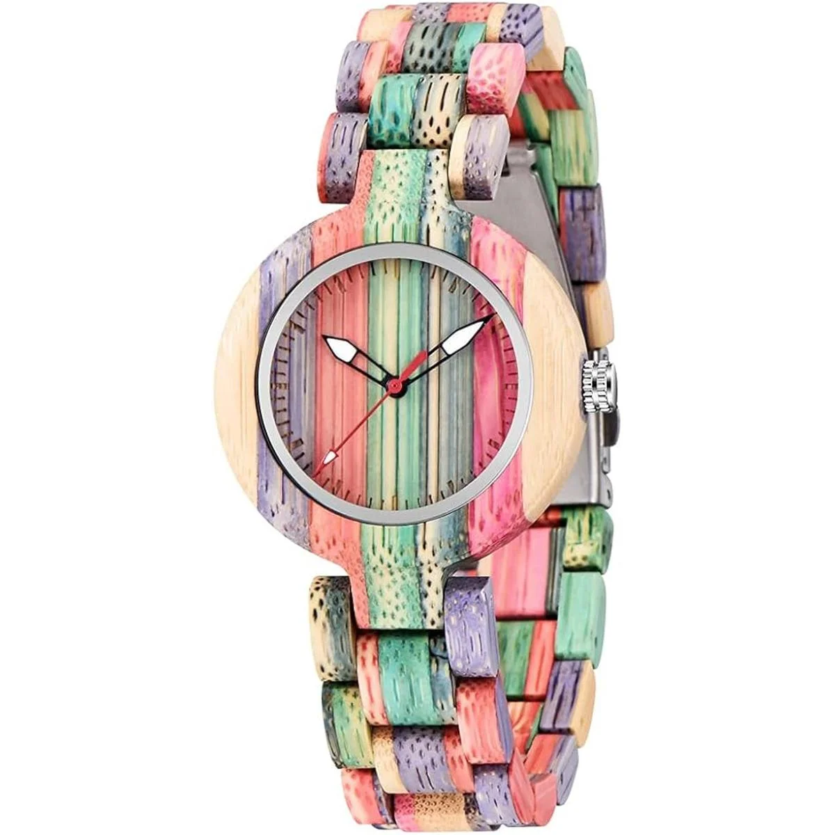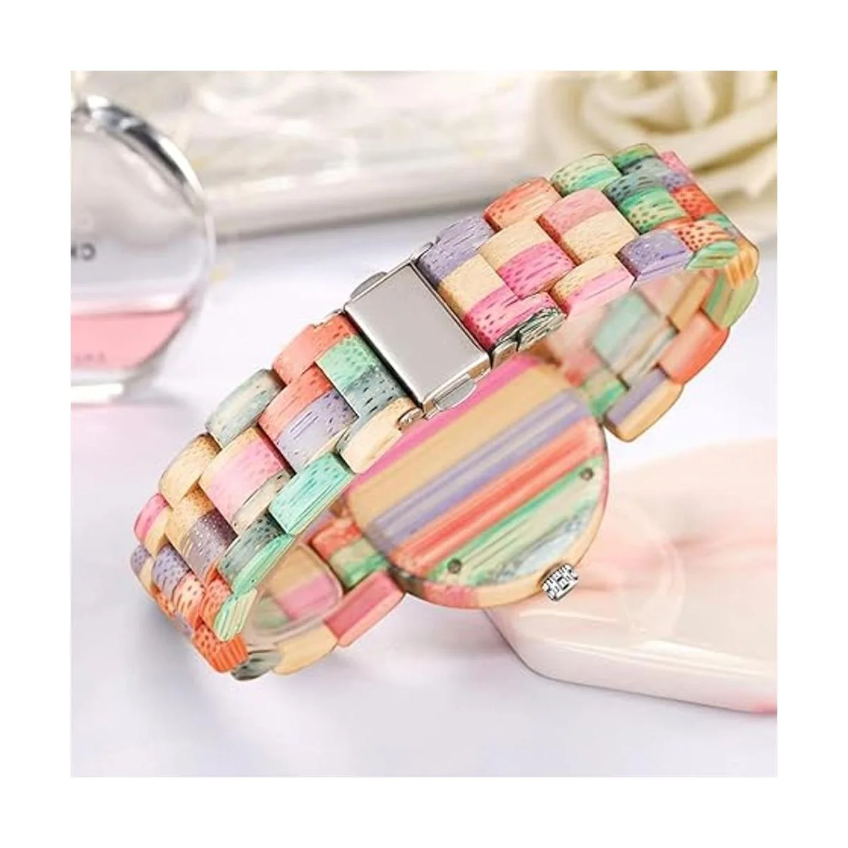 Relojes de madera analógica de cuarzo analógico de madera de bambú colorida para mujer