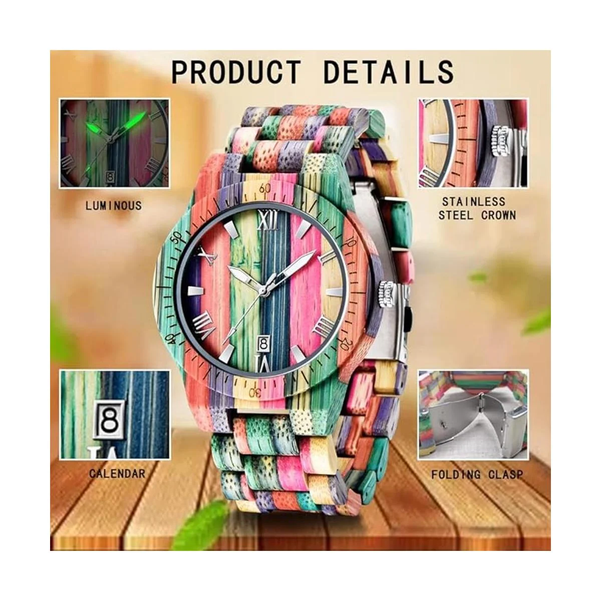 Relojes de madera para hombre, hechos a mano, coloridos, de madera de bambú, analógico, de cuarzo, para hombre, reloj de madera