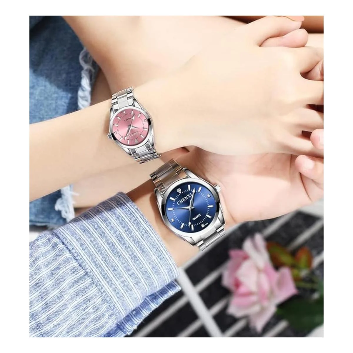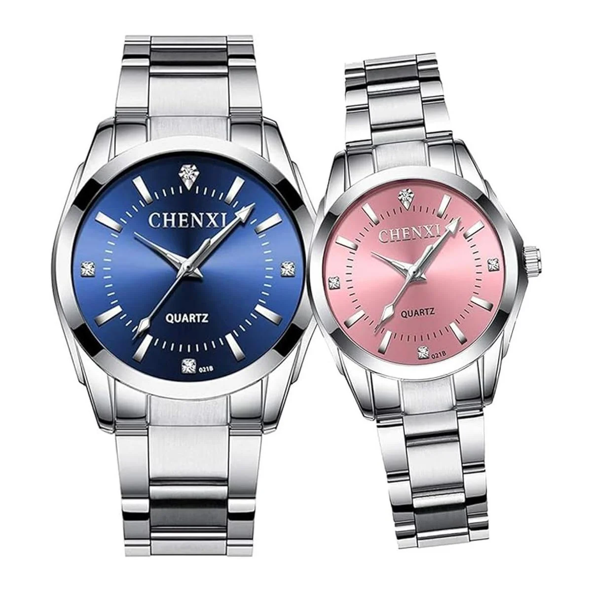 Relojes para parejas para hombres y mujeres, reloj de acero inoxidable dorado y plateado a la moda para él y para ella