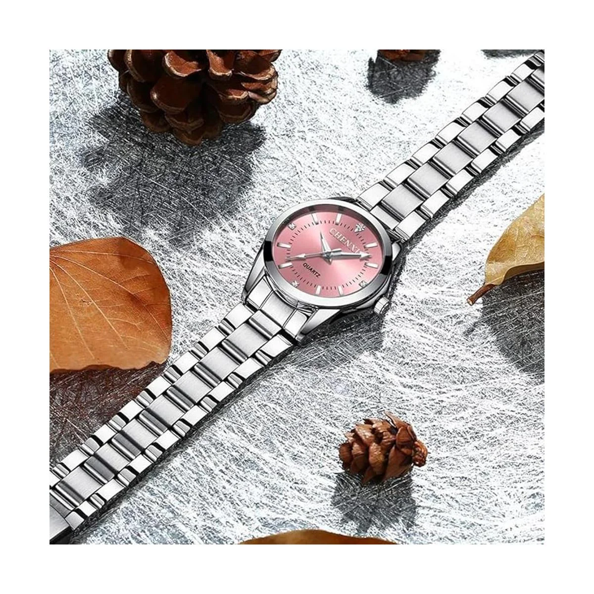 La correa de acero inoxidable pulido suave proporciona una experiencia de uso resistente al desgaste y cómoda, la cubierta de acero inoxidable a prueba de agua hace que sea súper duradera, el vidrio de alta dureza puede prevenir eficazmente el desgaste, haciendo que la esfera se vea clara y transparente.