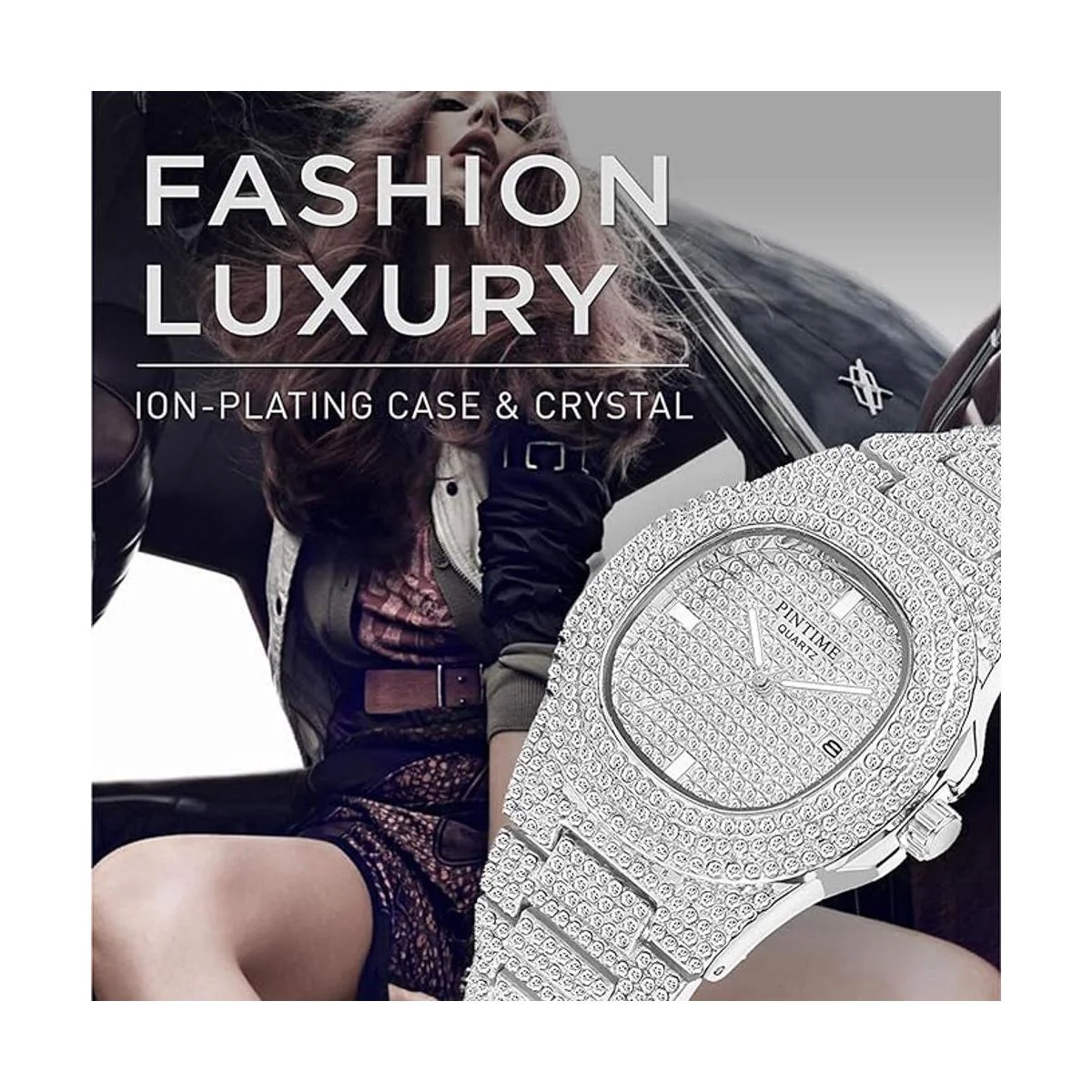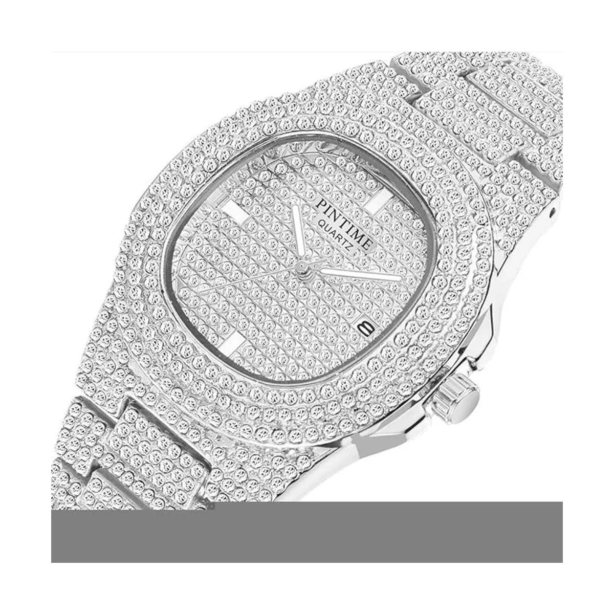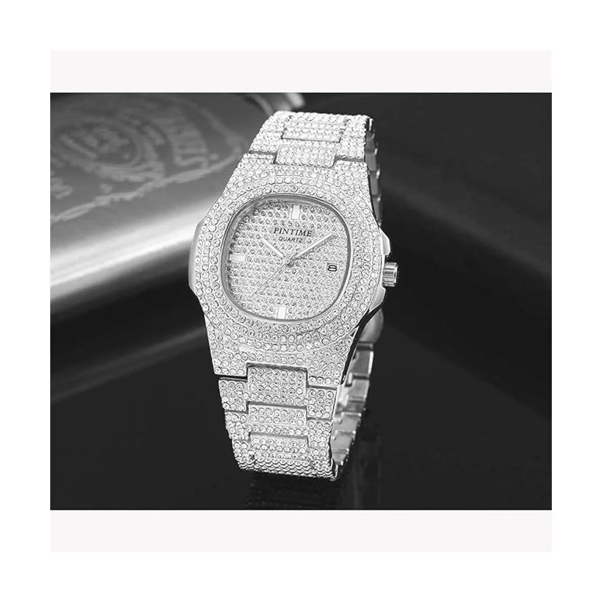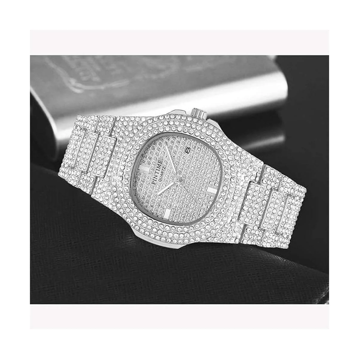 Relojes unisex de lujo con diamantes completos y plata y oro a la moda de cuarzo analógico de acero inoxidable