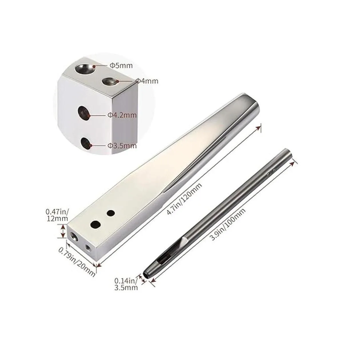 Tamaño adecuado: el remache y el rebabero es de aprox. 4.5 x 0.7 x 0.5 in largo x ancho x alto, el cortador de perforación redondo hueco es de aprox. 0.138 in de diámetro, el remache de cobre es de aprox. 0.394 x 0.130 x 0.748 in y 0.394 x 0.130 x 0.551 in, el agujero de la rebaba, es de aprox. 0.130 in de diámetro intermedio y 0.354 in de diámetro exterior.