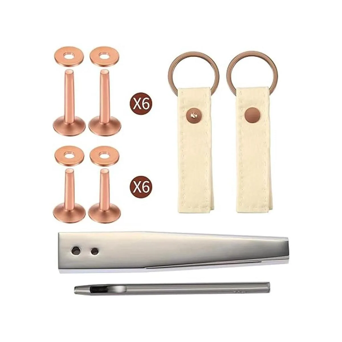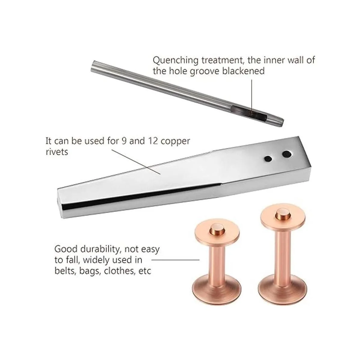 Remachadora y remachadora de cobre rojo con fijador de remaches de acero inoxidable, herramienta de instalación y cortador de agujeros para cinturones, carteras, collares, productos de piel, manualidades