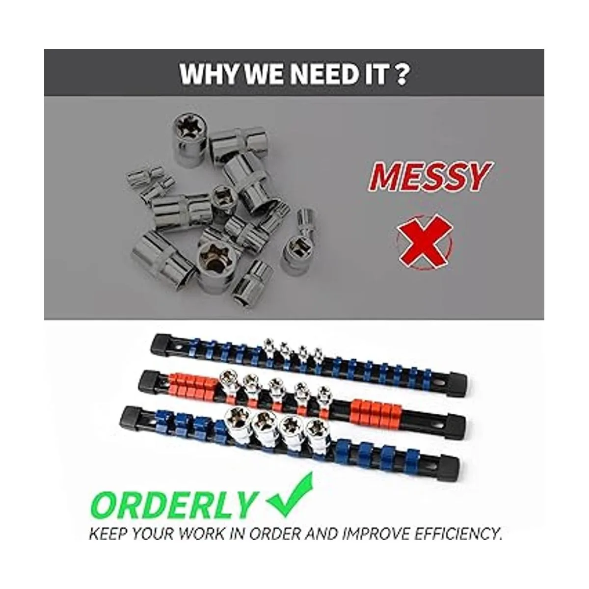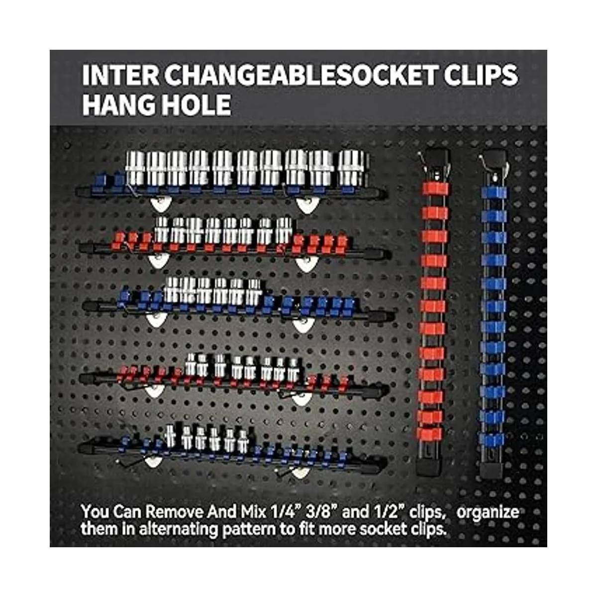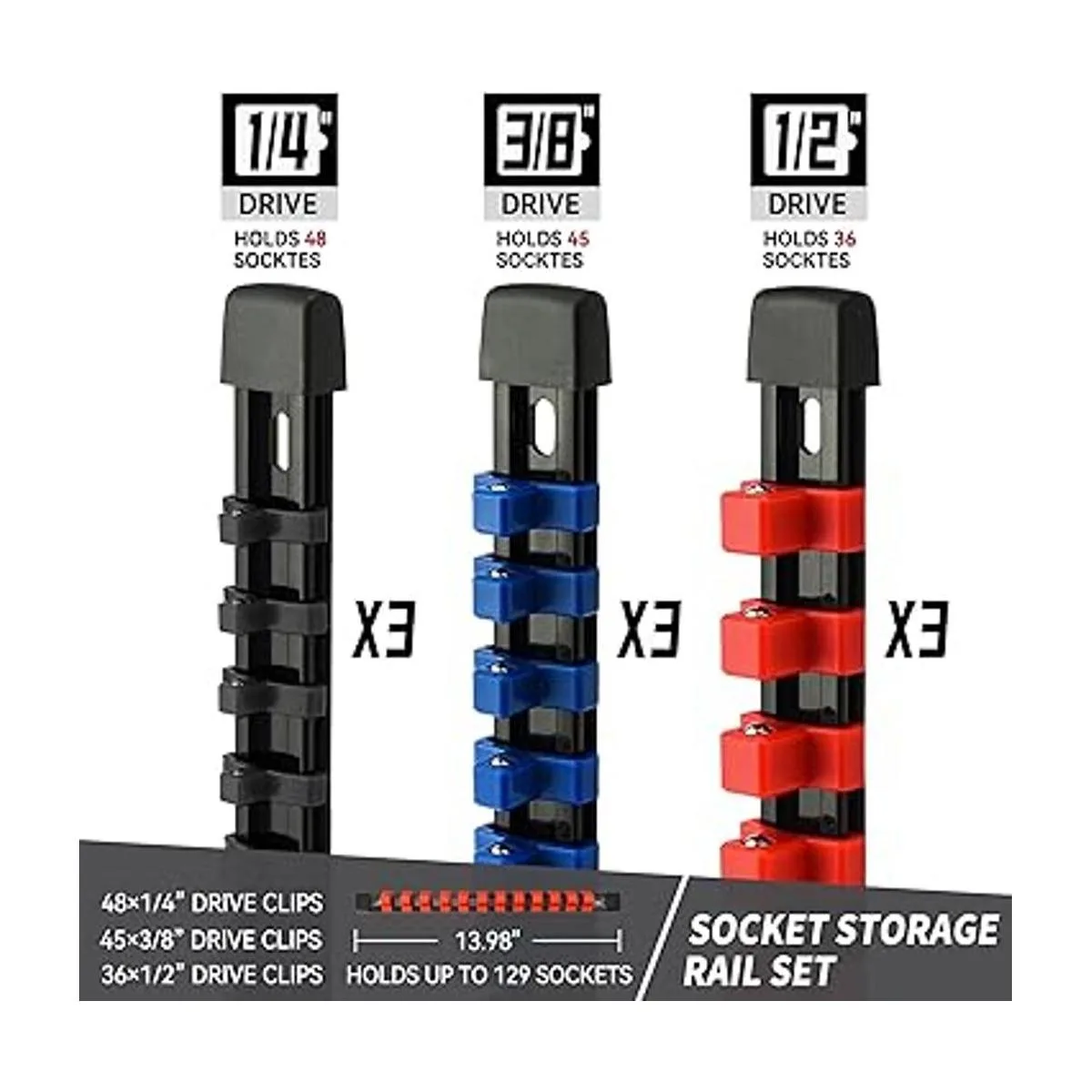 Reniteco Organizador de llaves de plástico ABS para herramientas de soporte, kit de 9 soportes de enchufe de alta calidad de 14 pulgadas x 48 clips, 38 pulgadas x 45 clips, 12 pulgadas x 36 clips