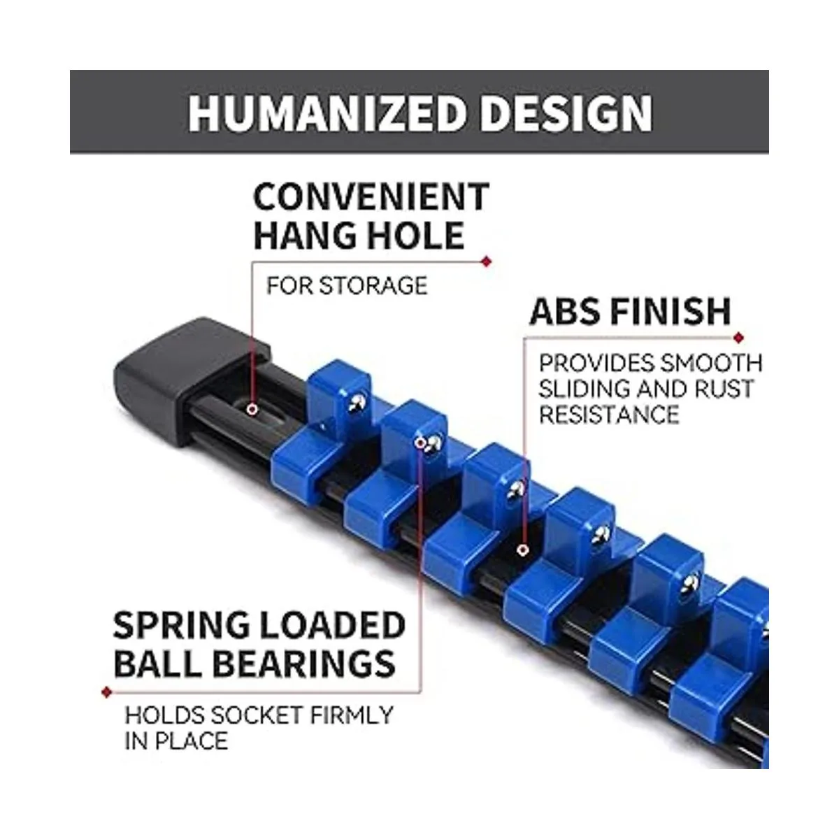 Moldeado resistente: hecho de plástico ABS moldeado resistente. Permite enchufes poco profundos o profundos, métricos o SAE pulgadas.