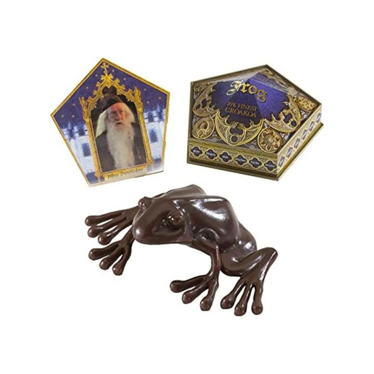 Cuenta con una réplica de rana de chocolate no comestible como se ve en Honeydukes Sweetshop.