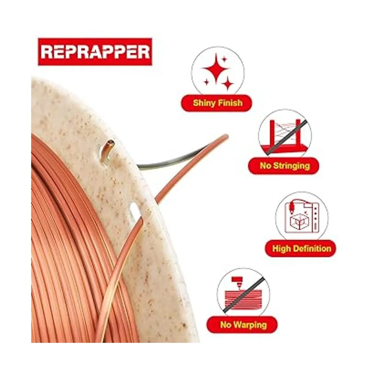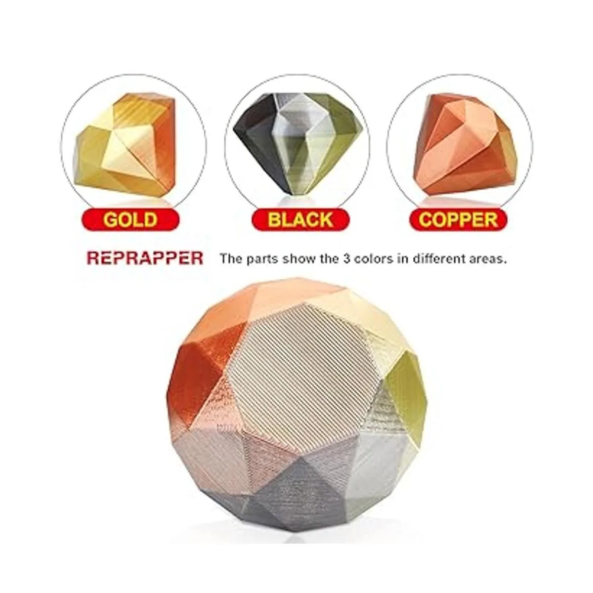 Reprapper Filamento PLA de coextrusión de triple color de 0.069 in para impresora 3D y bolígrafo 3D, multicolor como doble color Rainbow PLA, 2.2 libras 2.2 lbs, seda PLA doradocobre negro