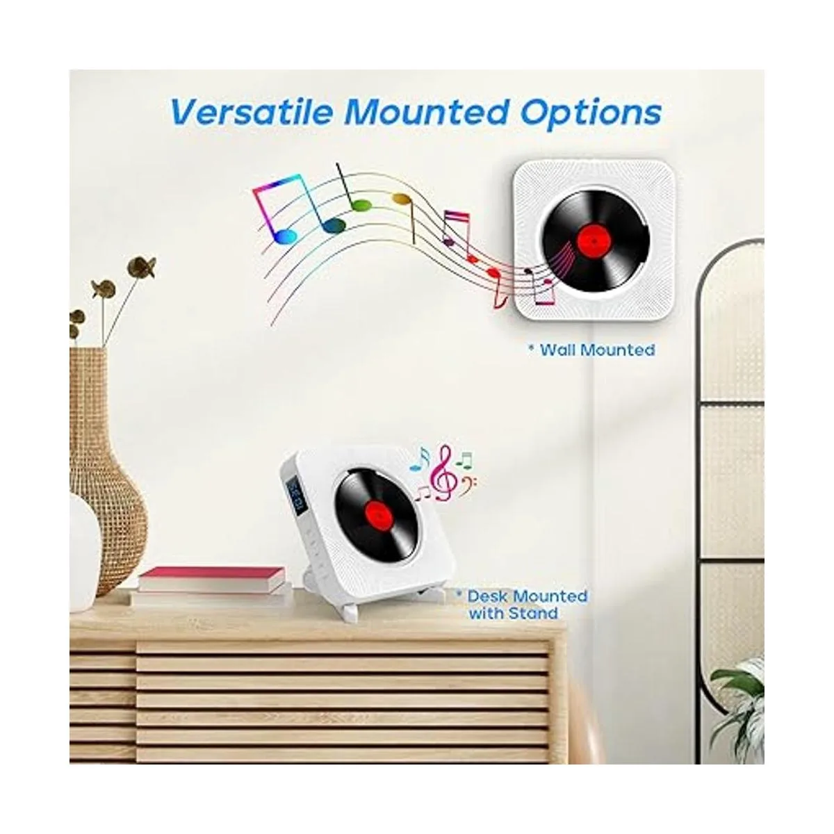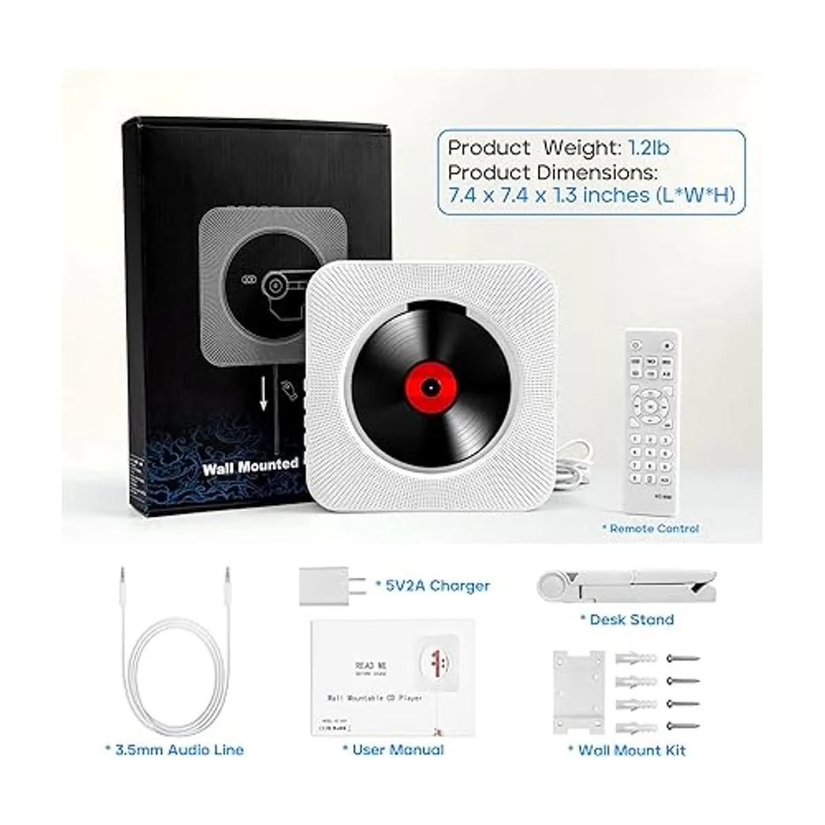 Reproductor de CD de pared, actualizado KC809, reproductores de CD ROADOM para el hogar, altavoces Bluetooth y radio FM con pantalla LCD, reproductor de CD montado en la pared con control remoto IR, compatible con CDBluetoothFM disco Utarjeta SDAUX