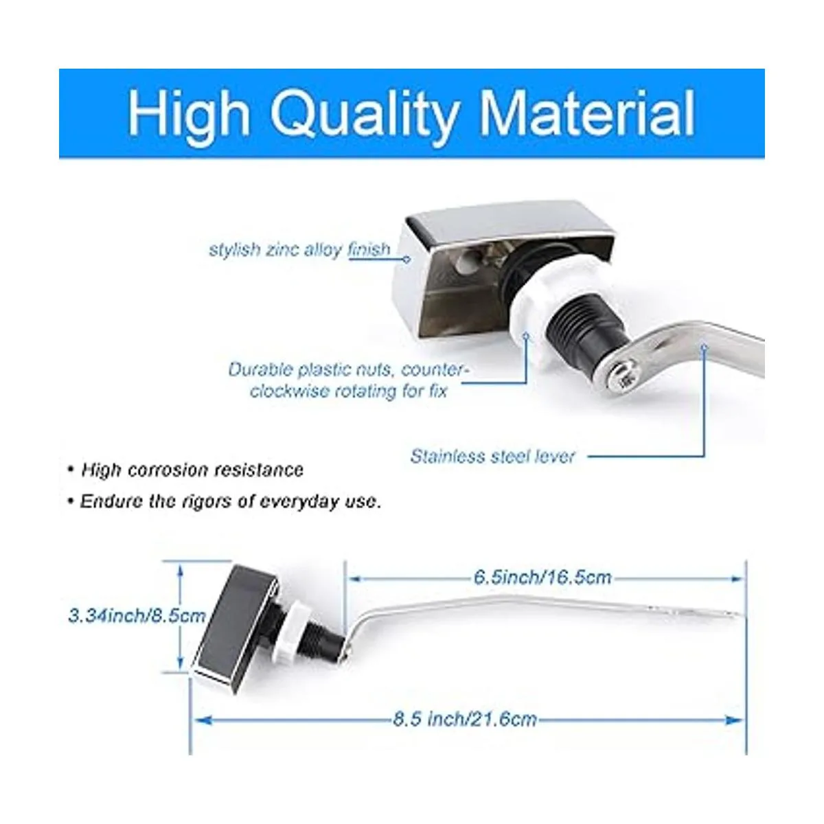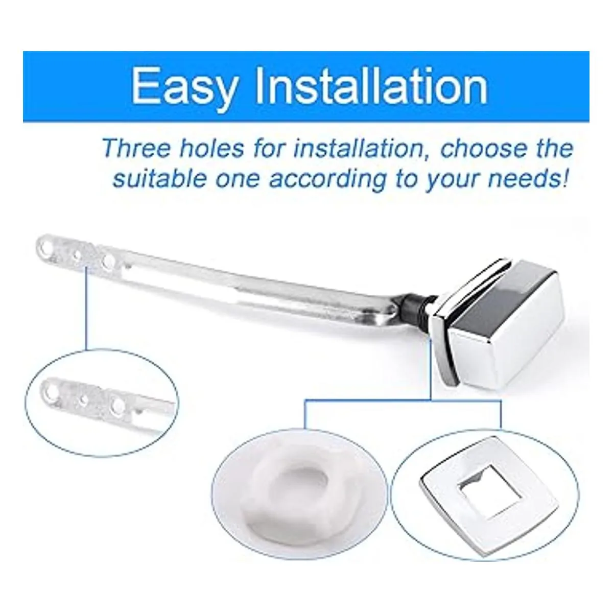 Fácil de instalar: montaje lateral de la palanca del tanque del inodoro. Fácil instalación. Tres agujeros para la instalación, elige el adecuado de acuerdo a tus necesidades. Enrasado lateral adecuado para la mayoría de inodoros estadounidenses. Ten en cuenta al instalar que las palancas de descarga tienen una rosca invertida.