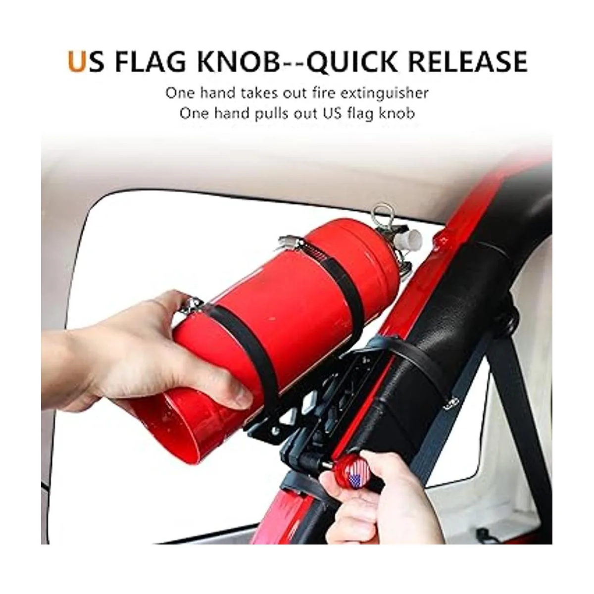 Liberación rápida: liberación rápida tirando de la perilla roja de la bandera de Estados Unidos cuando lo necesites, más seguro y eficaz. Además, la instalación rápida vuelve al extintor, más rápida y conveniente.