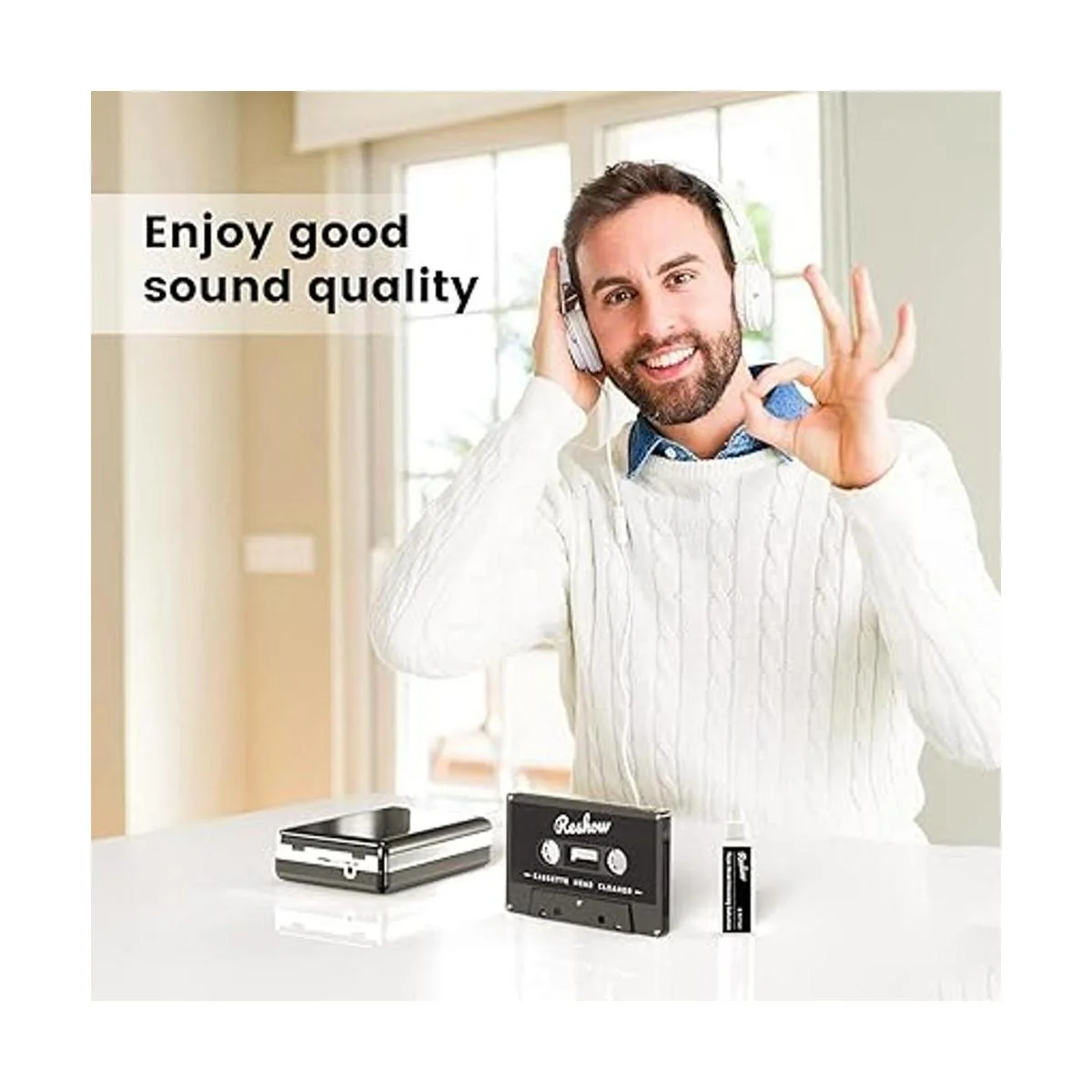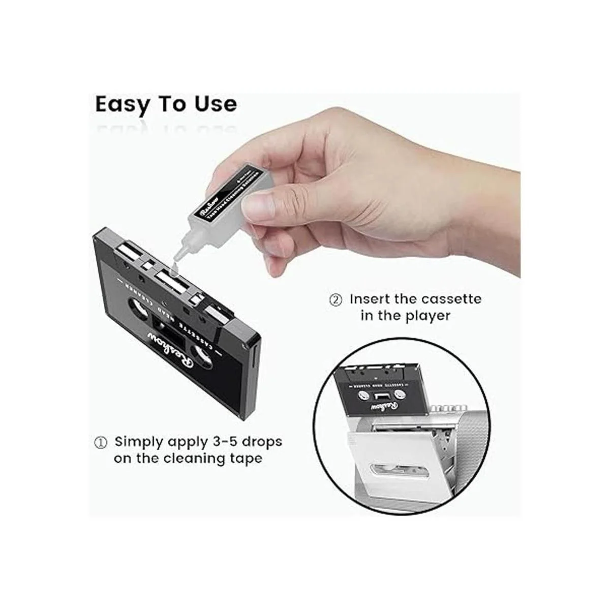 Reshow Limpiador de cabeza de cassette con 2 fluidos de limpieza Cuidado húmedo Kit de mantenimiento para cassetteBoomboxDeckRecorder