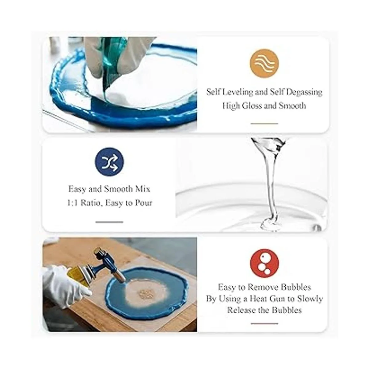Pruebas rigurosas : nuestra resina epoxi es un complemento perfecto para todos los pigmentos que brillan en la oscuridad y otros pigmentos artesanales. Todo sobre nuestra resina epoxi hace que sea fácil obtener un atractivo acabado transparente rápida y fácilmente. Formulado con artículos de alimentos que rodean el arte conforme a los artículos, como bandejas, vasos, tablas de cortar de cristalería, vajilla y otros artículos en la cocina.