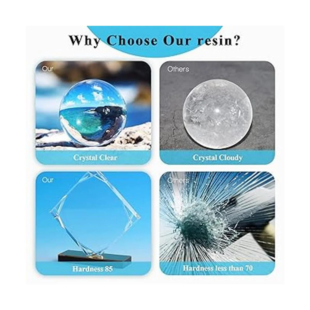 Alto brillo y duradero : nuestra resina epoxi produce un revestimiento resistente, sin compuestos orgánicos volátiles COV, bajo olor, alto brillo, resistente al agua y a los arañazos y amarilleamiento. La resina epoxi transparente es fuerte, transparente y totalmente resistente a los rayos UV dura como una roca, asegurando que tus obras de arte y proyectos de bricolaje sean duraderos.