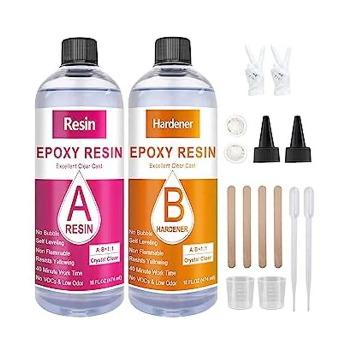 100 garantía de satisfacción : garantiza tu satisfacción. Si la mejor resina epoxi no cumple con tus expectativas, no dudes en ponerte en contacto con nosotros. Te proporcionaremos el mejor servicio. Herramientas y accesorios de resina epoxi que contiene: 1 resina de 16 onzas, 1 endurecedor de 16 onzas, 4 palos de agitación, 2 guantes, 1 instrucciones idioma español no garantizado.