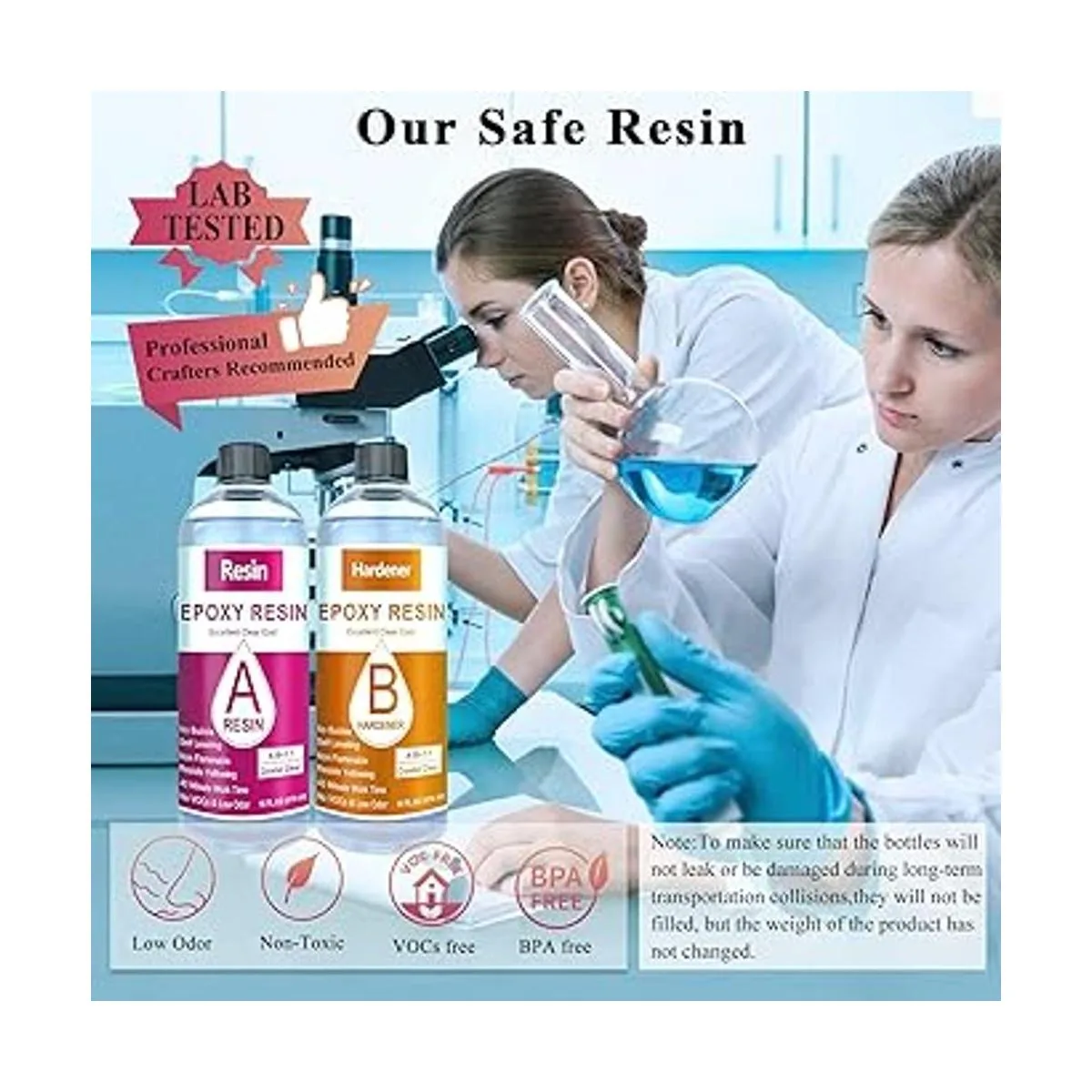 Resina epoxi Kit de resina de 32 onzas, resina epoxi transparente, no se amarillea y sin burbujas, autonivelante, fácil mezcla 11 de fundición y revestimiento para hacer joyas de bricolaje, resina y resina epoxi 32 onzas